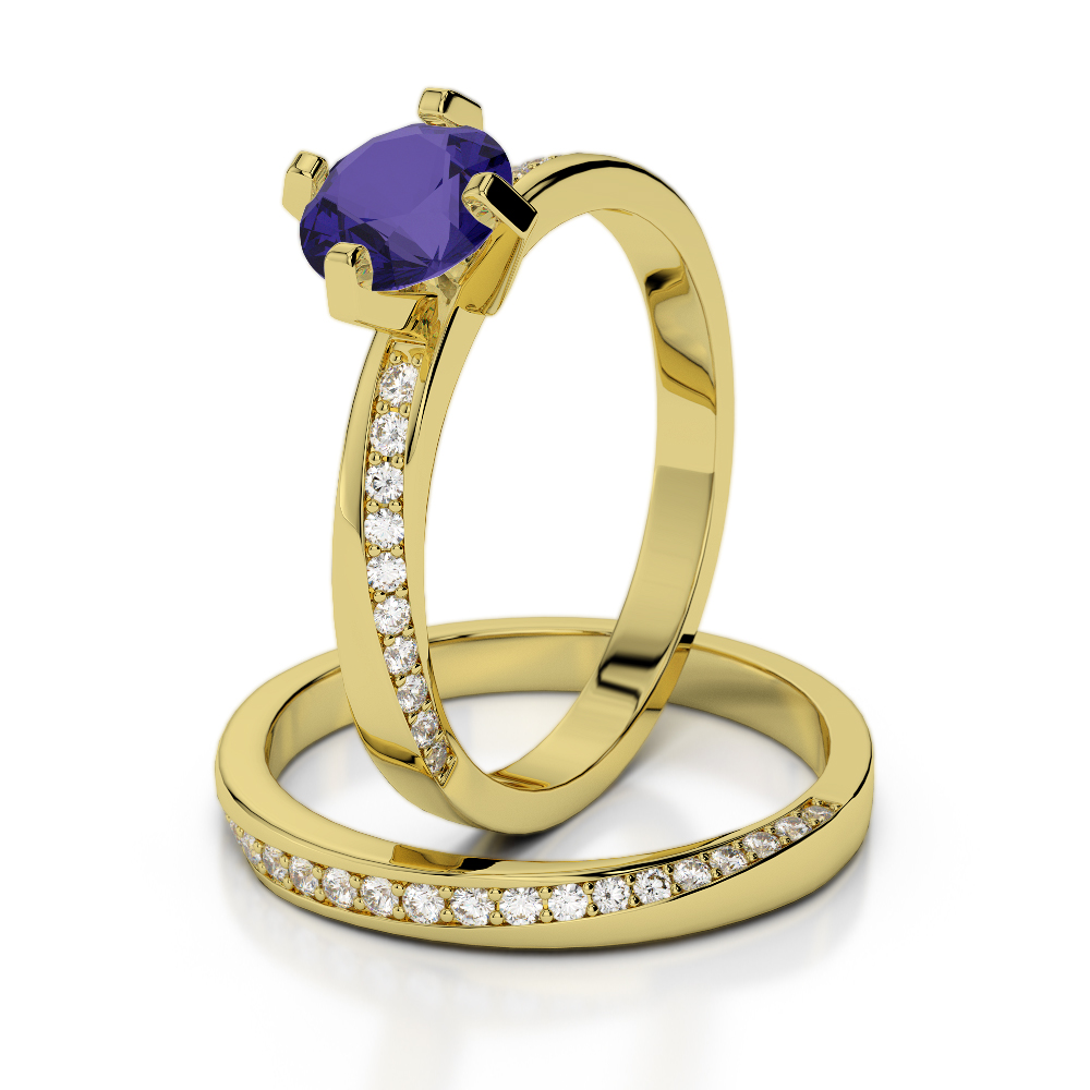 Four Prong Set Tanzanite Bridal Set Ring With Diamond 0324