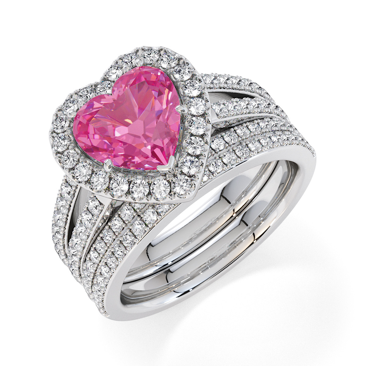 Heart Shape Pink Sapphire and Diamond Engagement Ring 0795