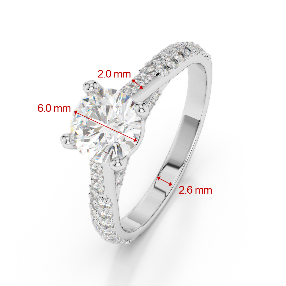 This exquisite Emerald And Diamond Engagement Ring features a stunning round brilliant cut diamond, expertly set in a classic prong setting to maximize its brilliance and sparkle. The prongs securely cradle the diamond while allowing optimal light exposure, enhancing its exceptional fire and clarity. As the radiant centerpiece of this timeless piece, the diamond beautifully symbolizes the eternal love and commitment shared between partners.