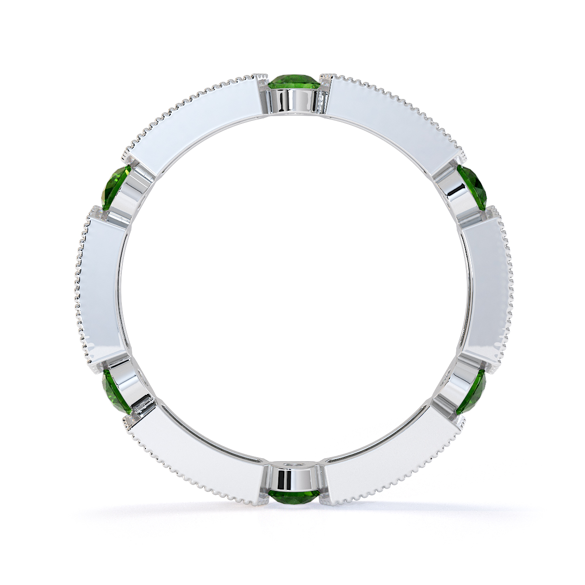 Milgrain Prong Set Diamond & Bezel Set Green Tourmaline Full Eternity Ring 0424