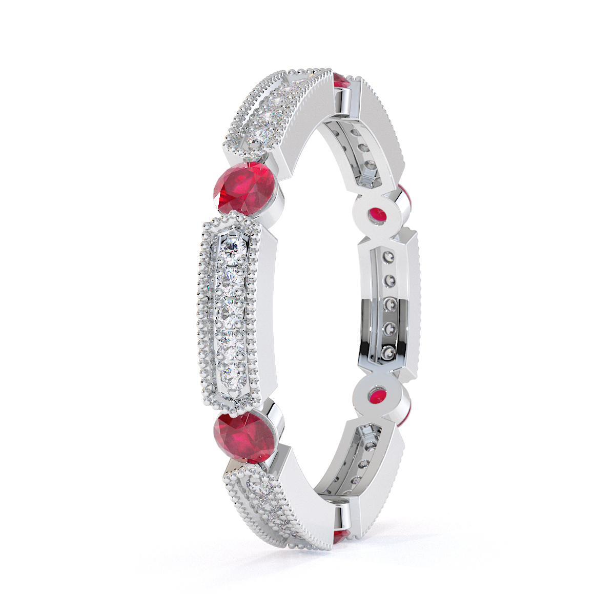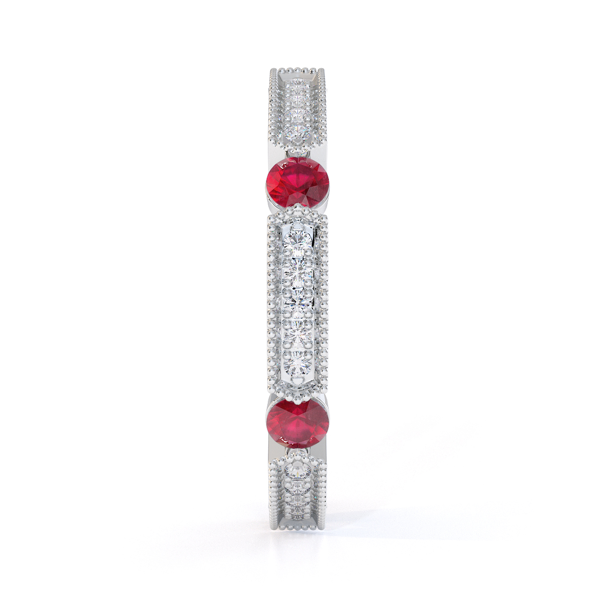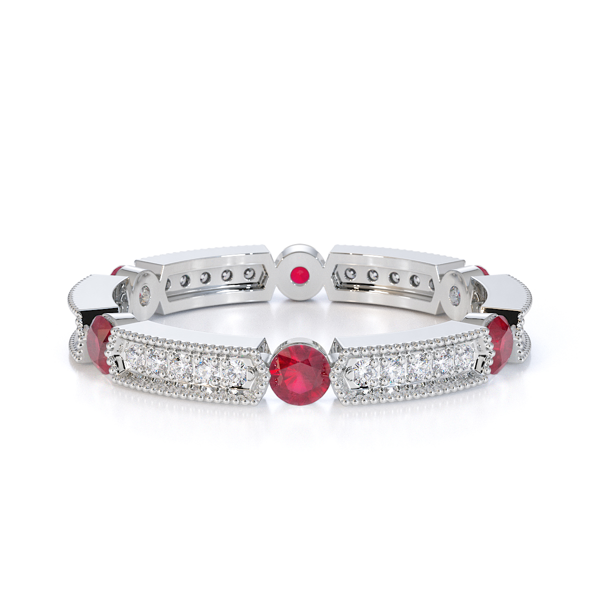 Milgrain Prong Set Diamond & Bezel Set Ruby Full Eternity Ring 0424