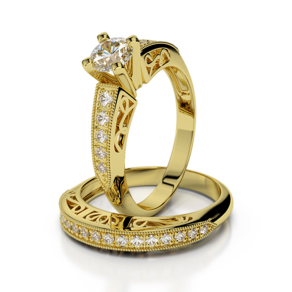 Milgrain Prong Set Diamond Bridal Set Ring 0315