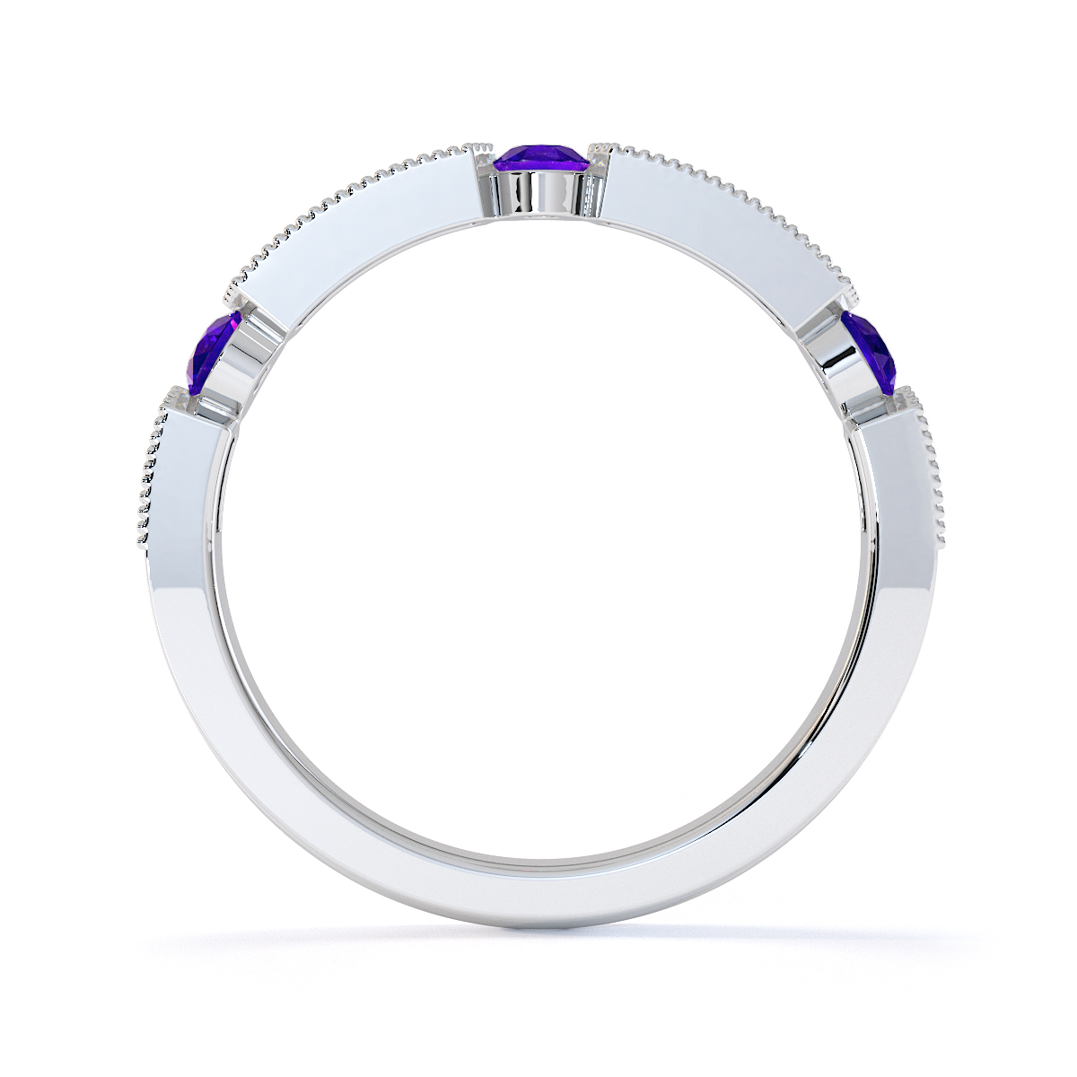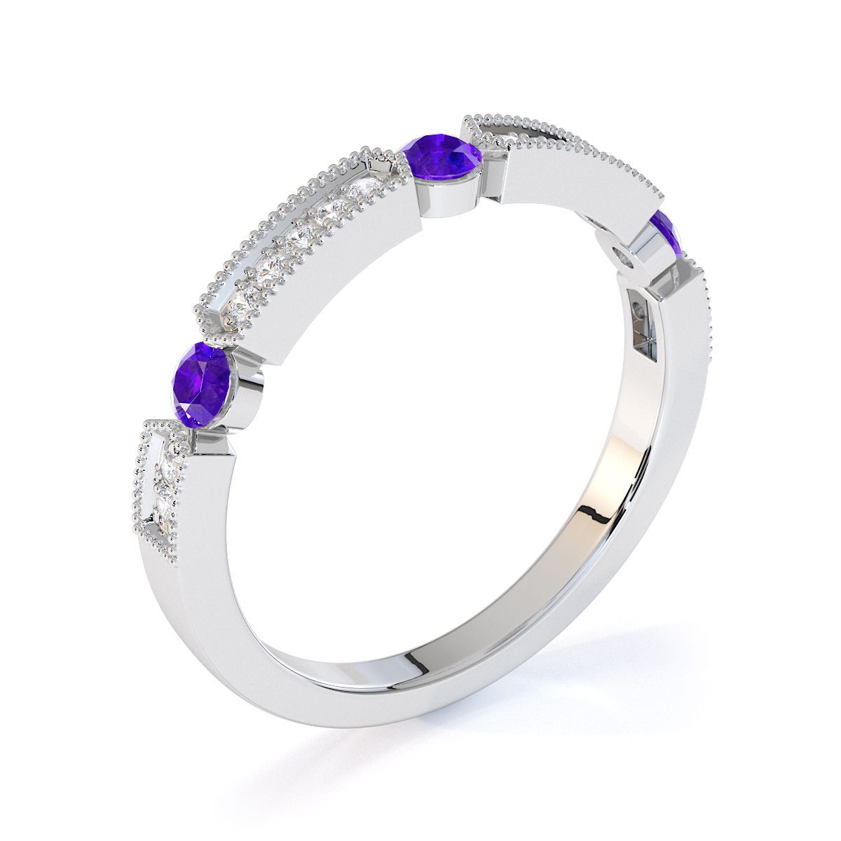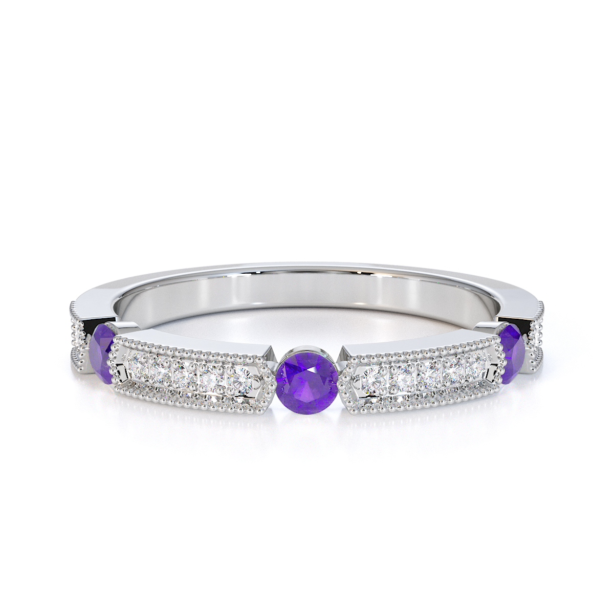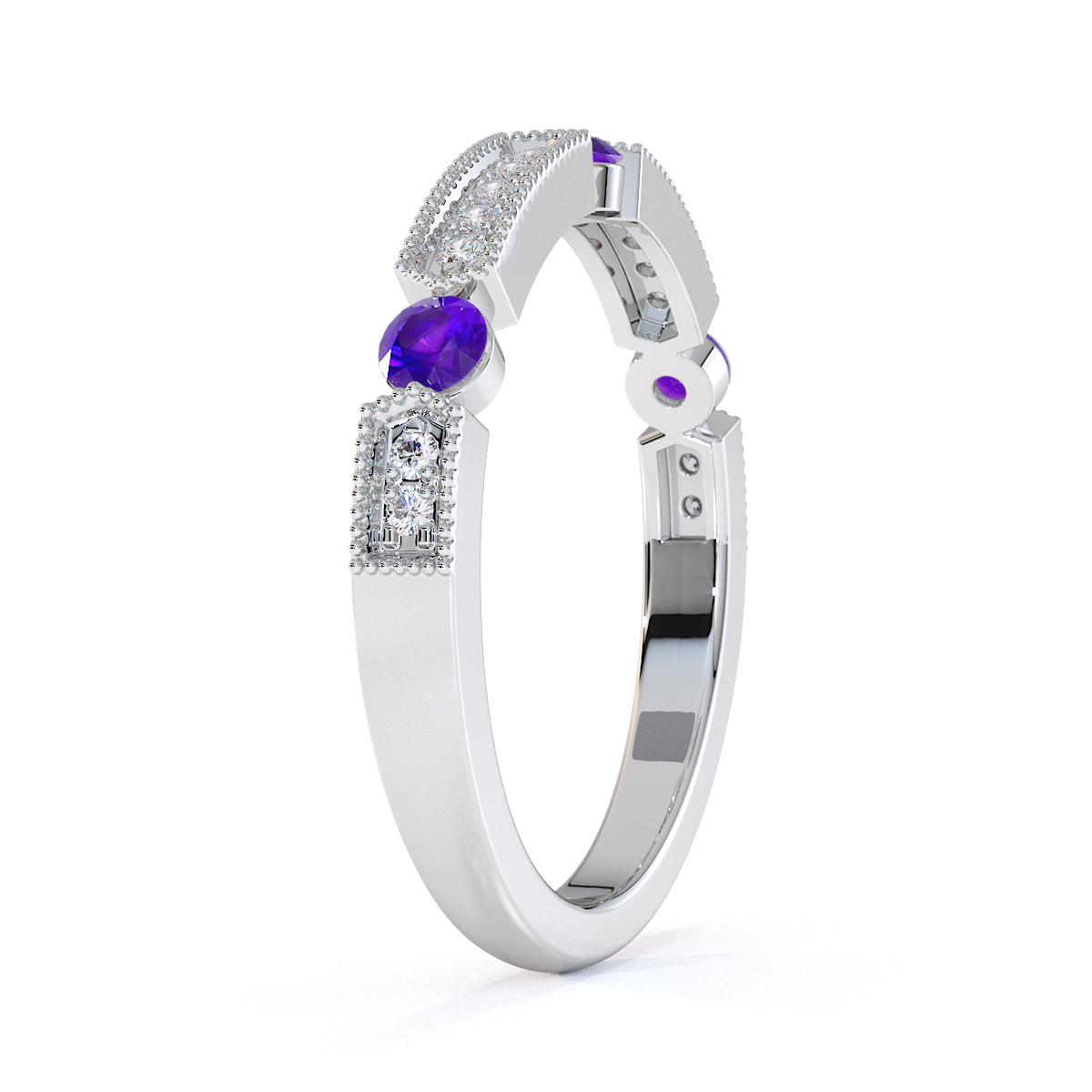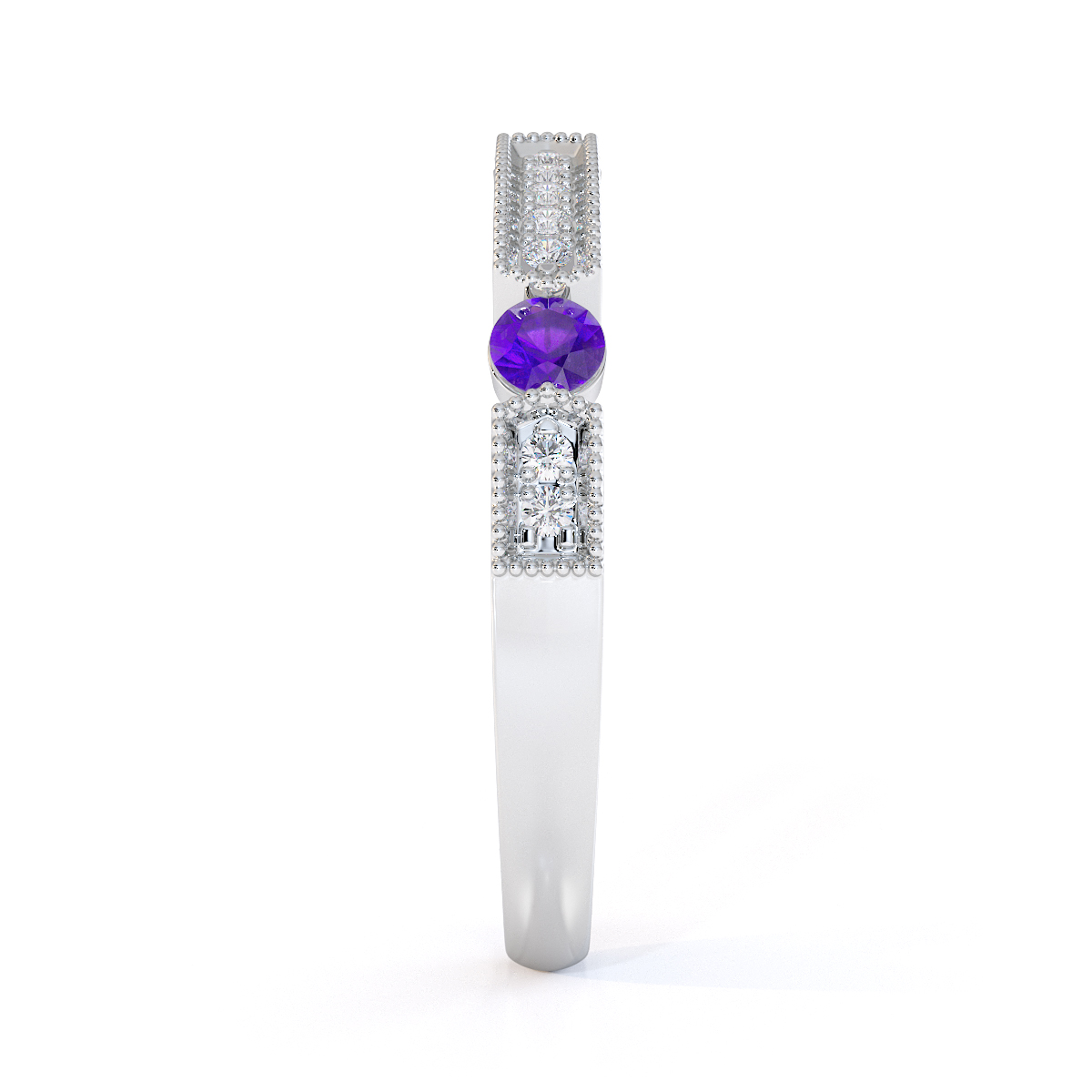 Milgrain Round Cut Diamond and Amethyst Half Eternity Ring 0425