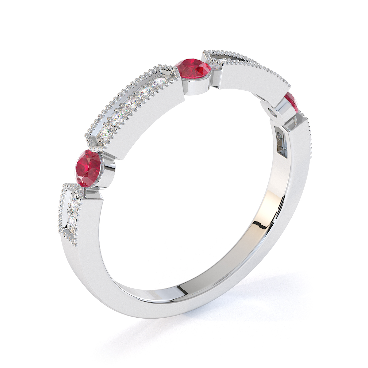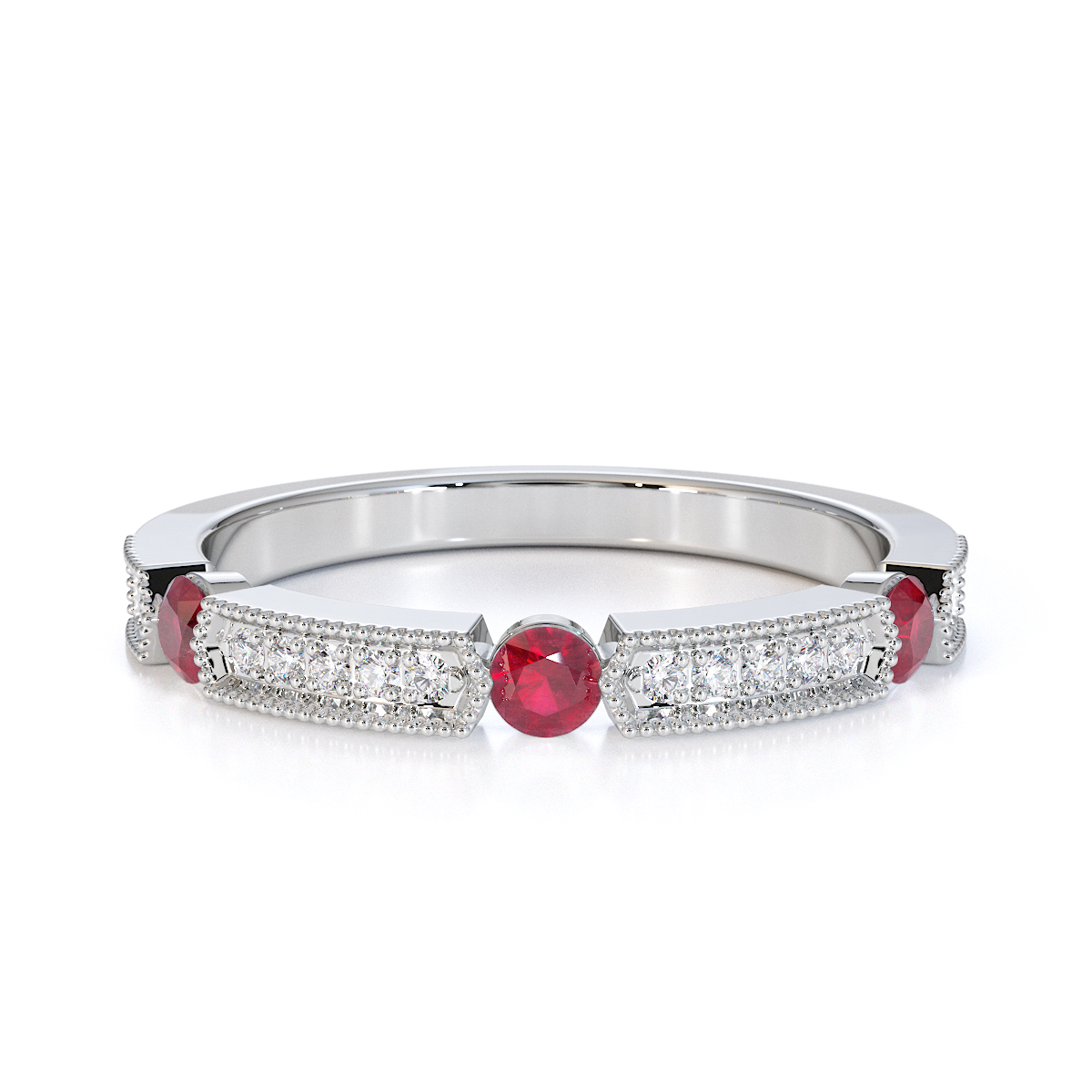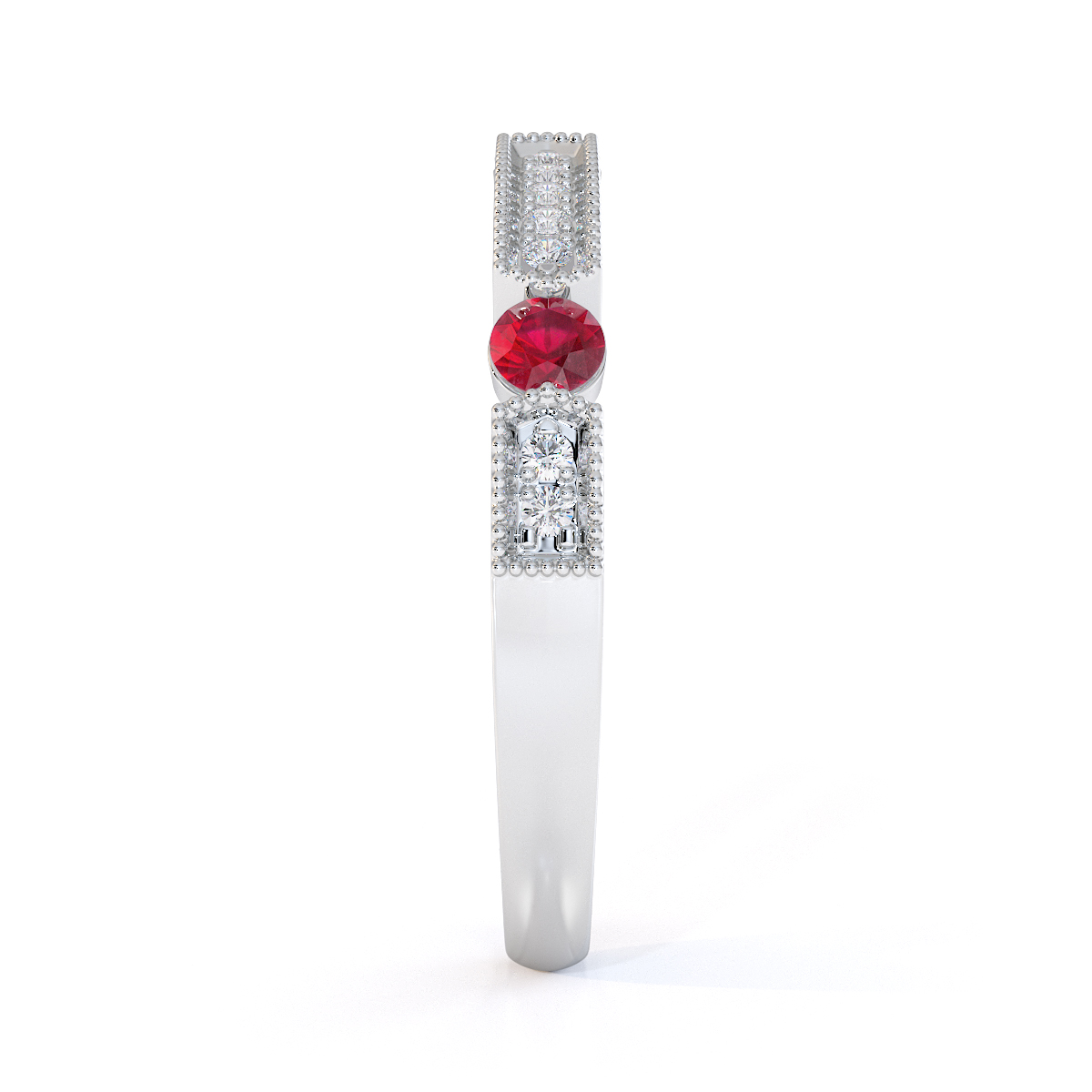 Milgrain Round Cut Diamond and Ruby Half Eternity Ring 0425