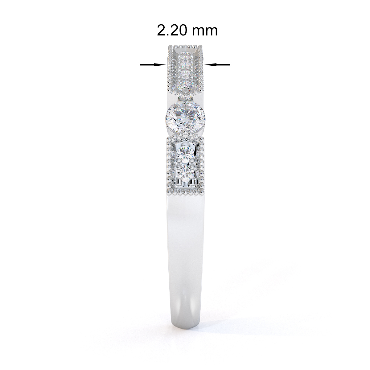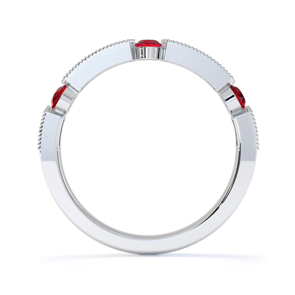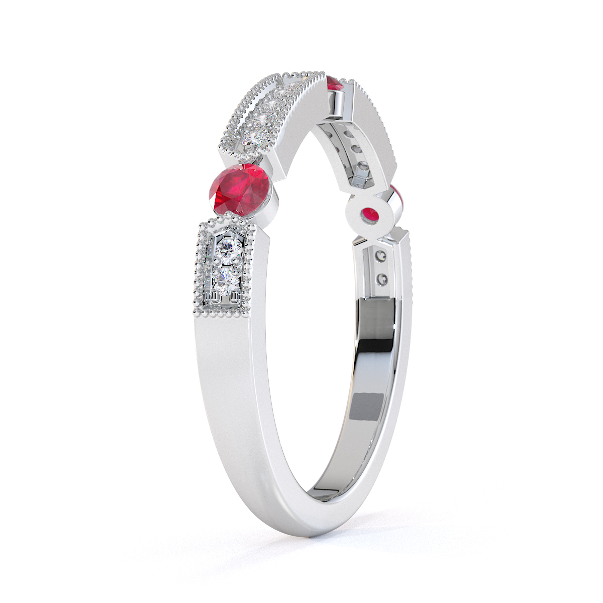 Milgrain Round Cut Diamond and Ruby Half Eternity Ring 0425