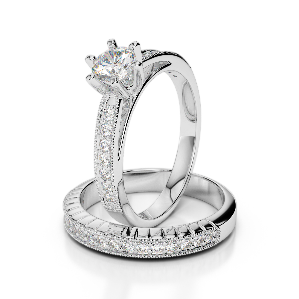 Milgrain Round Cut Diamond Bridal Set Ring 0309
