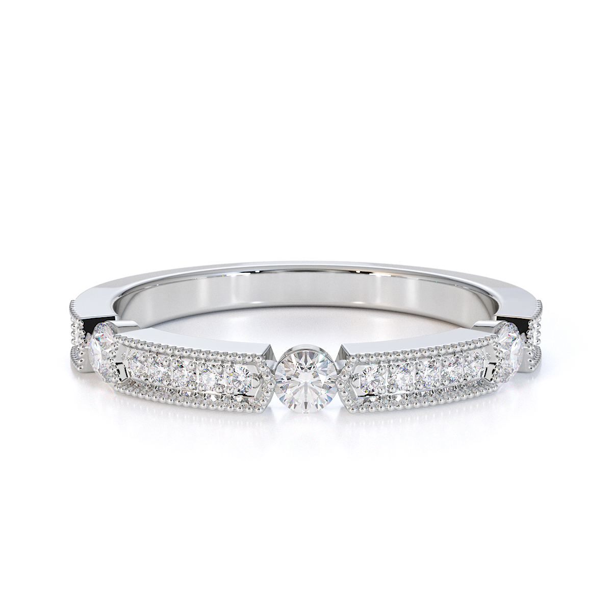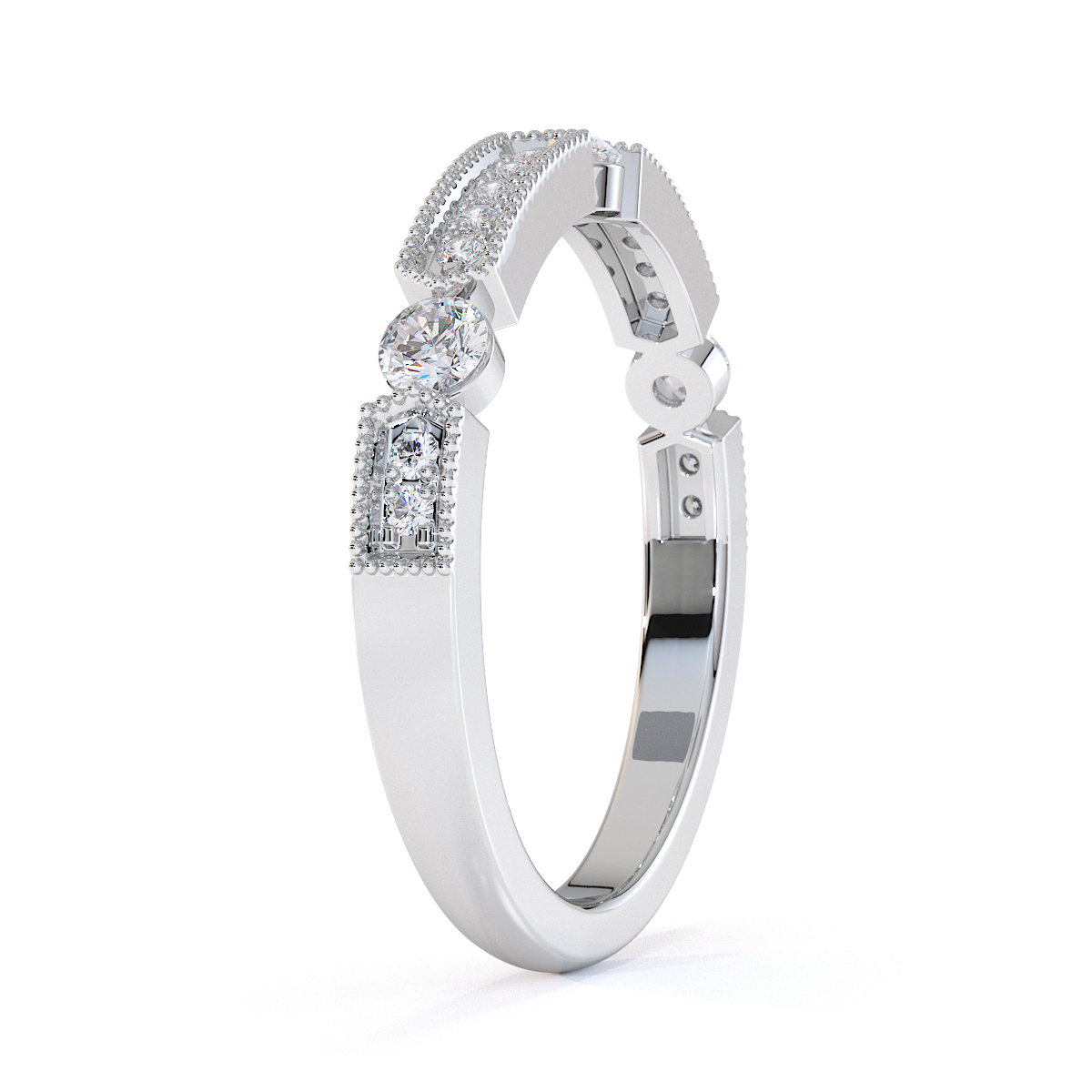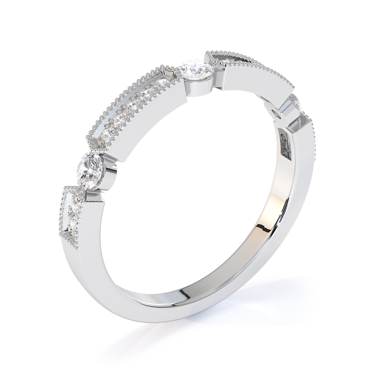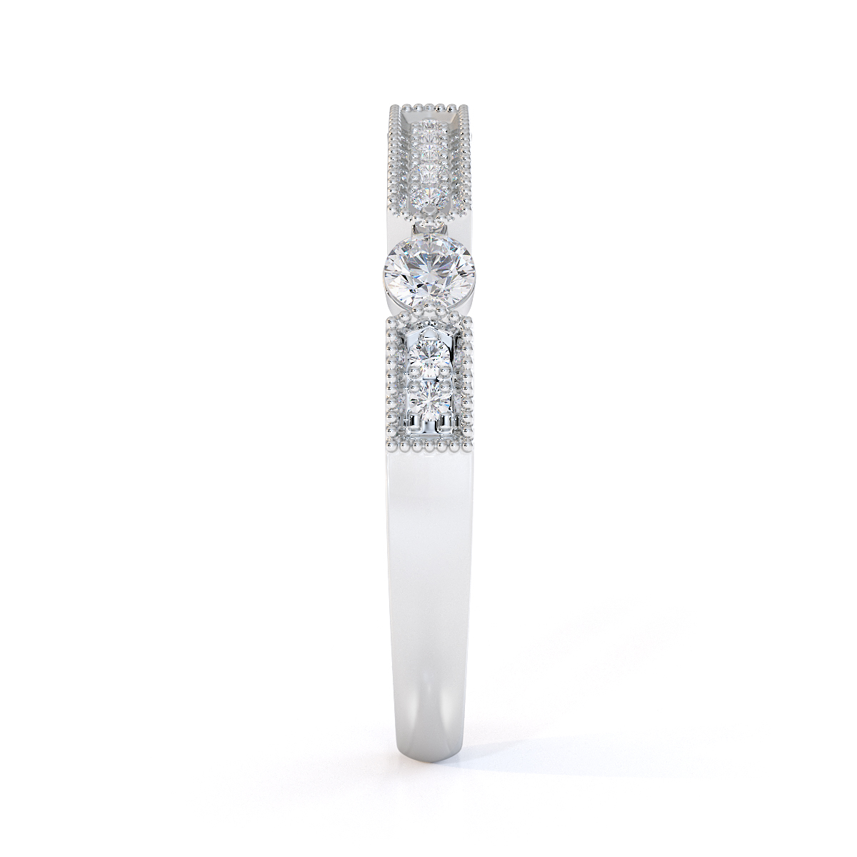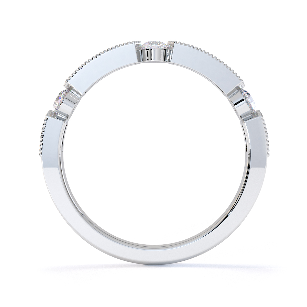 Milgrain Round Cut Diamond Half Eternity Ring 0425
