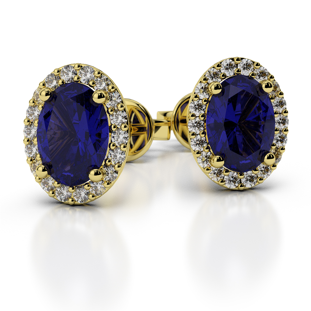The Oval Shape Blue Sapphire Diamond Earrings offer a distinct and chic touch to elevate any attire. Equipped with a screw-back lock system and a prong setting, they guarantee secure wear, while a halo encircles the central Blue Sapphire, enhancing its allure. The Blue Sapphire's center is complemented by shimmering round brilliant diamonds, striking a harmonious blend of sophistication and sparkle. Perfect for birthdays, anniversaries, or Ovalfelt gestures of affection.