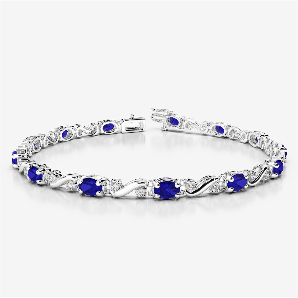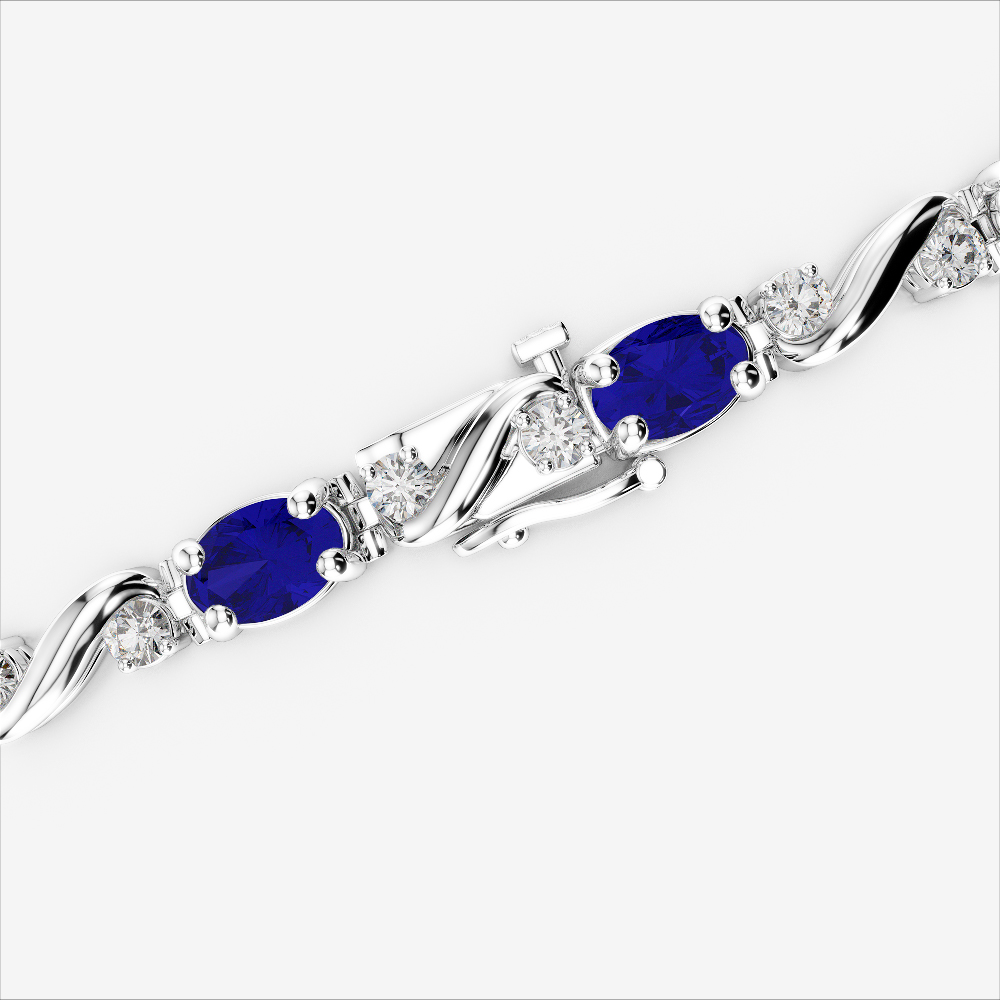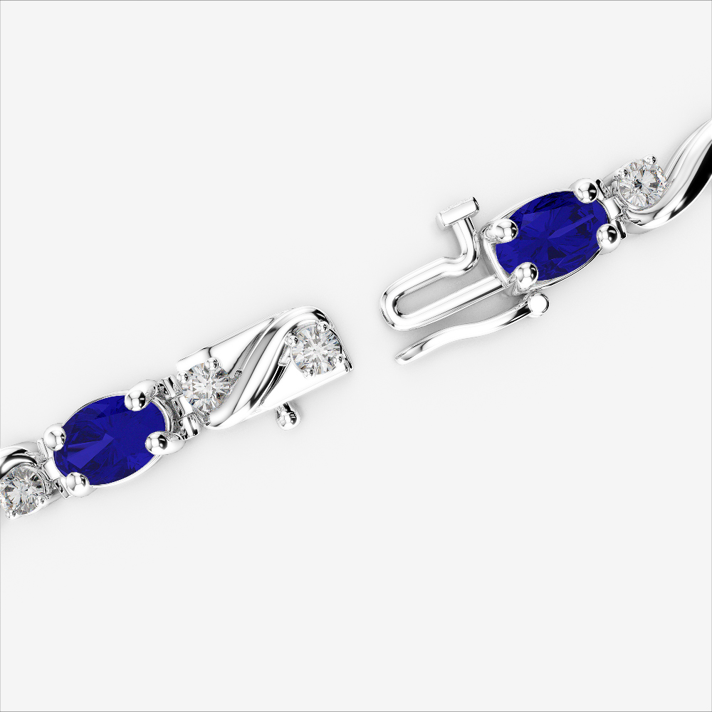 Oval Shape Blue Sapphire & Round Cut Diamond Bracelet 0730