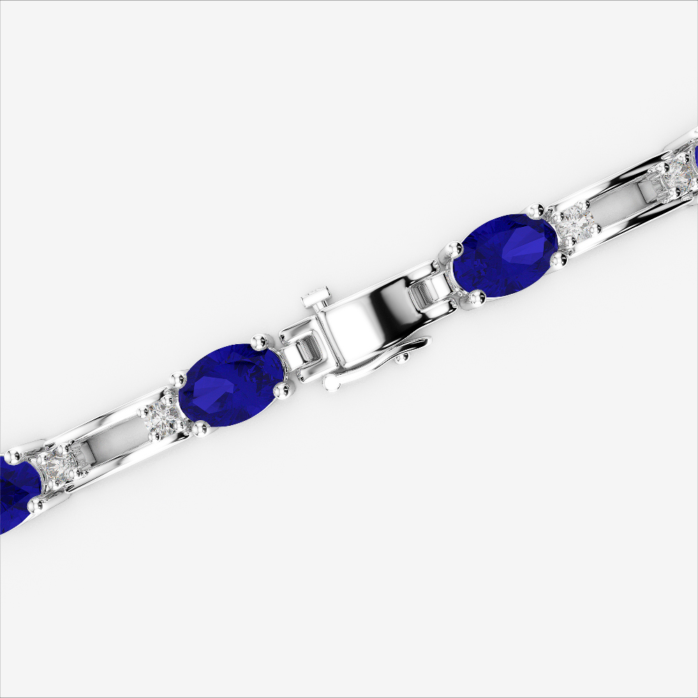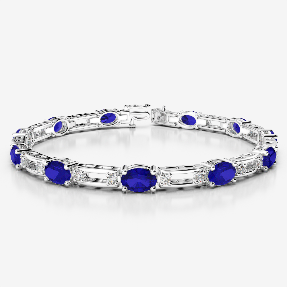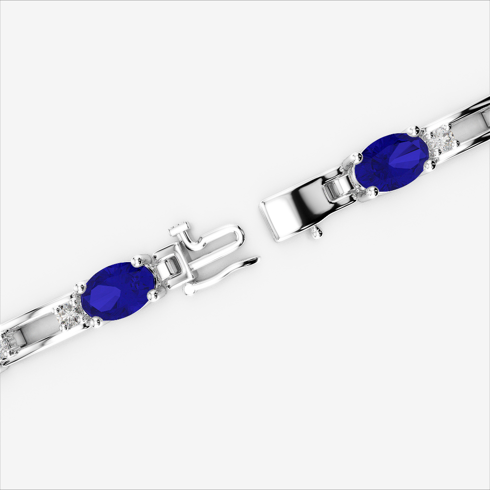 Oval Shape Blue Sapphire & Round Cut Diamond Bracelet 0731