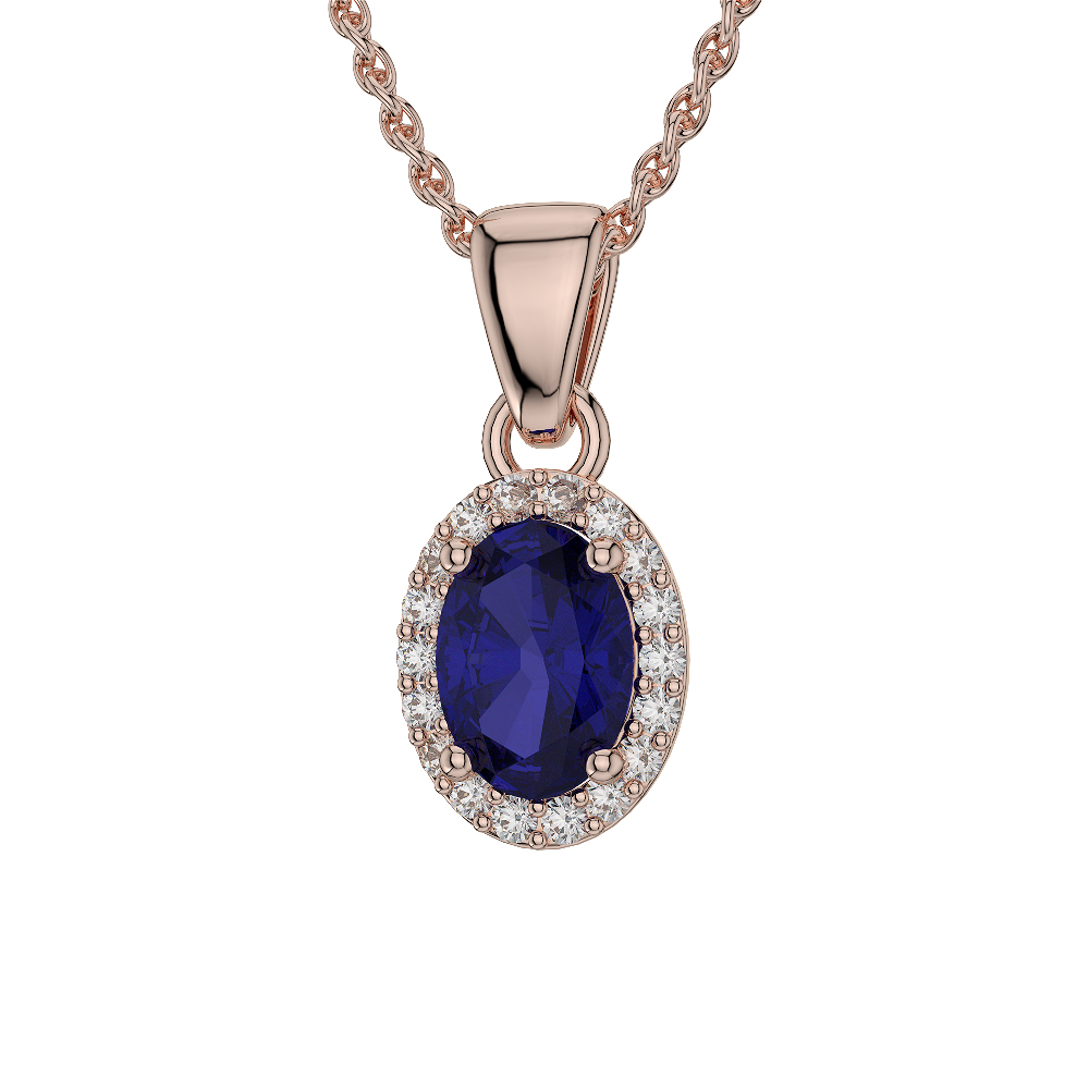 Oval Shape Blue Sapphire & Round Cut Diamond Necklaces 0570