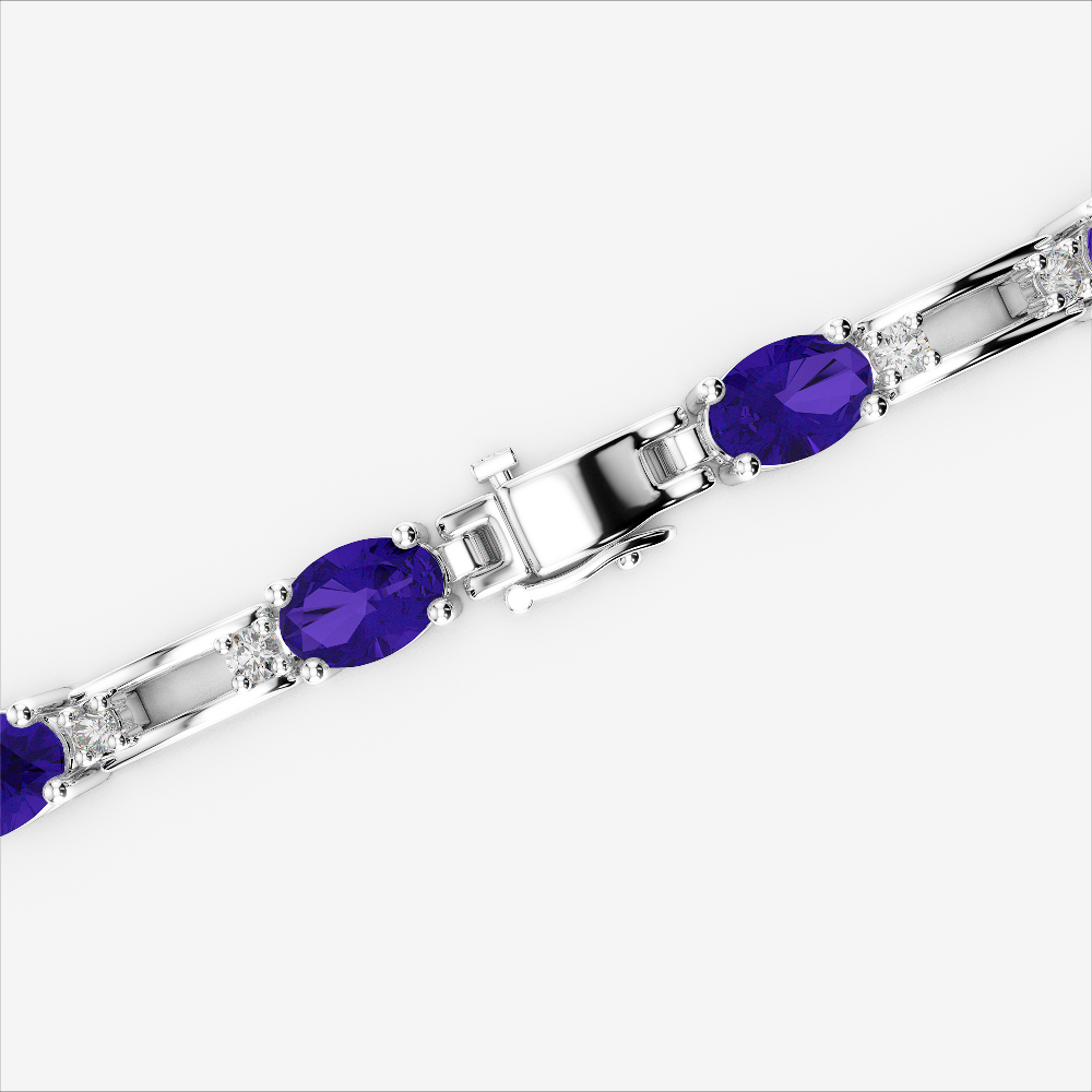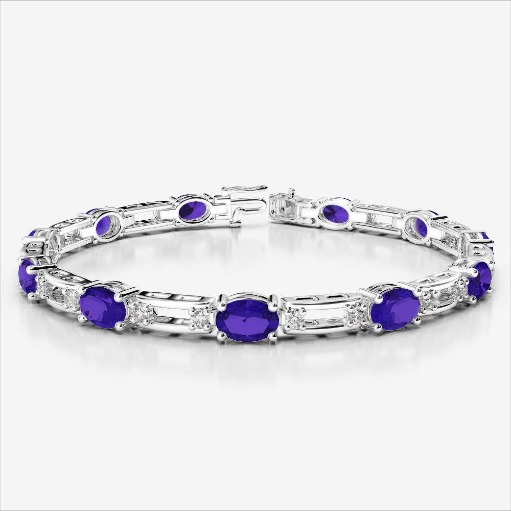 Let your elegance shine through with our prong-set oval-shaped tanzanite and round-cut diamond tennis bracelet. Designed to captivate, its rich tanzanite and dazzling diamonds bring timeless beauty to life. Perfect for any occasion, this bracelet elevates your style effortlessly. A treasured gift for you or someone dear, it makes every outfit more sophisticated and every gesture more graceful.