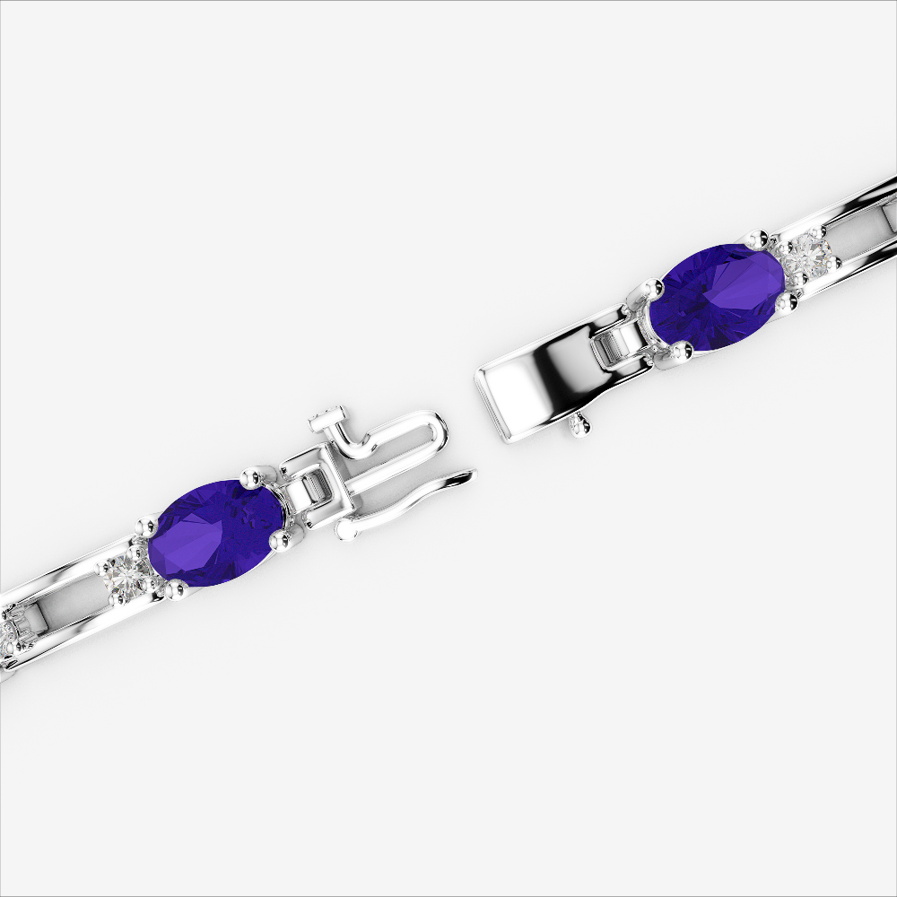 Oval Shape Tanzanite & Round Cut Diamond Bracelet 0731