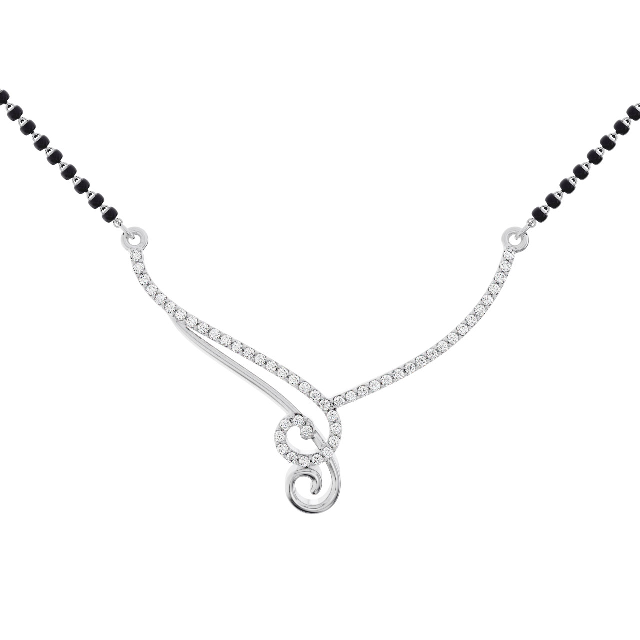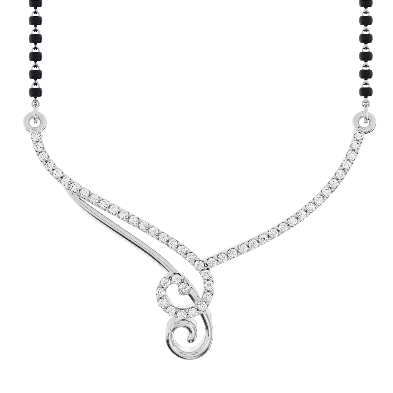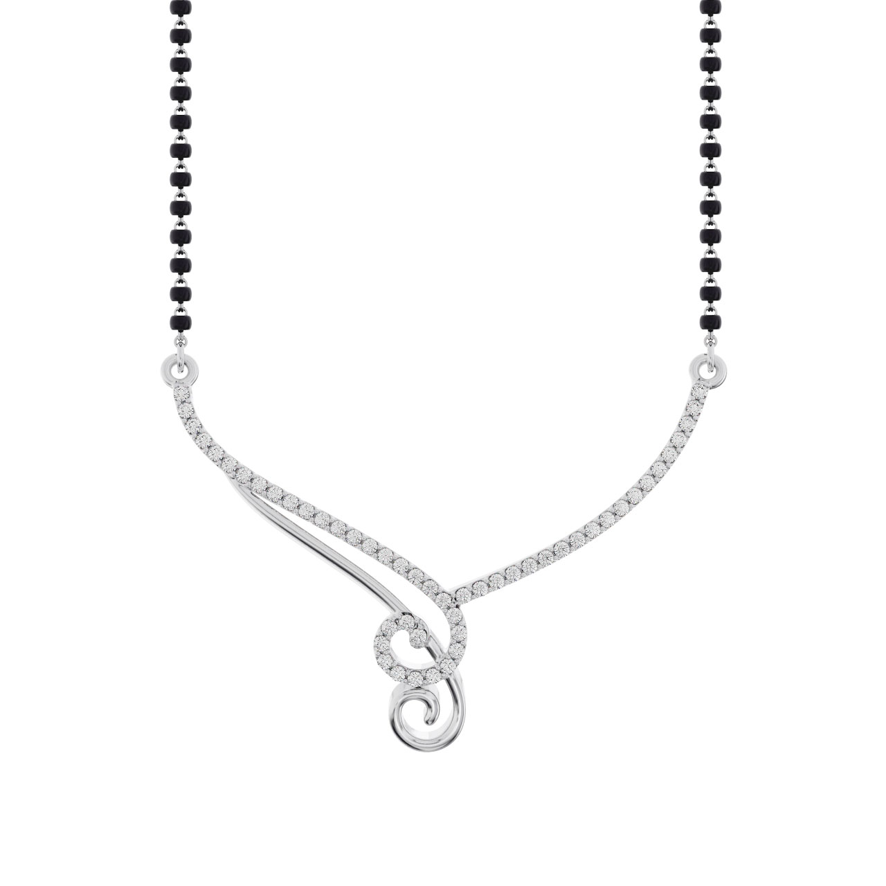 The Diamond Mangalsutra Necklace is graced with dazzling diamonds, embodying a refined expression of grace and love. Its prong adjustments ensure secure installation and enhanced brilliance. Whether presented sincerely or reserved for significant occasions, its enduring design renders it perfect, destined to be treasured for a lifetime.