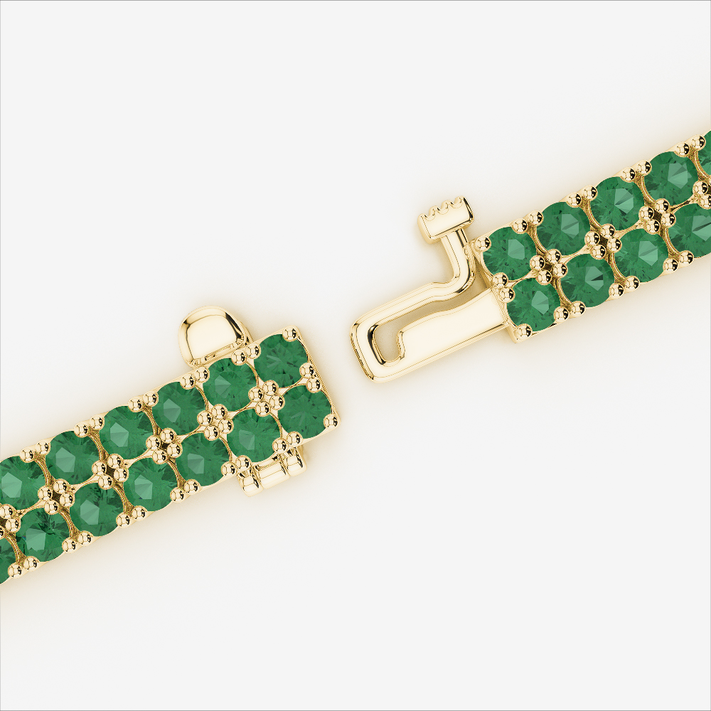 This Double Row Pave Set Round Cut Emerald Tennis Bracelet features Emeralds that offer maximum sparkle. The classic design ensures it's suitable for any occasion, providing lasting beauty with a refined, modern twist.
