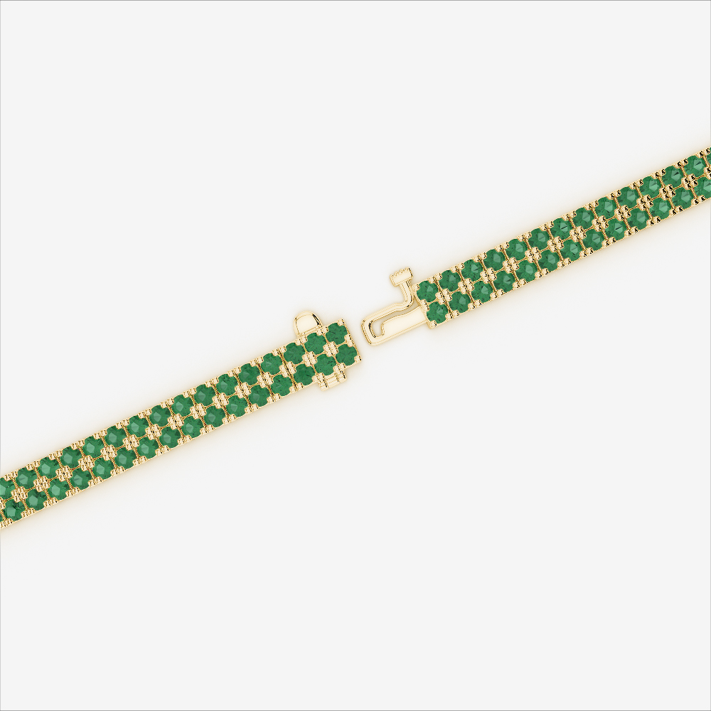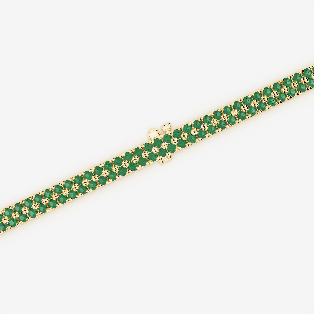 The Double Row Round Cut Emerald Tennis Bracelet features expertly pave set Emeralds that shine with exceptional clarity and fire. Designed to highlight each stone’s brilliance, this bracelet delivers elegance and sparkle in a graceful silhouette.