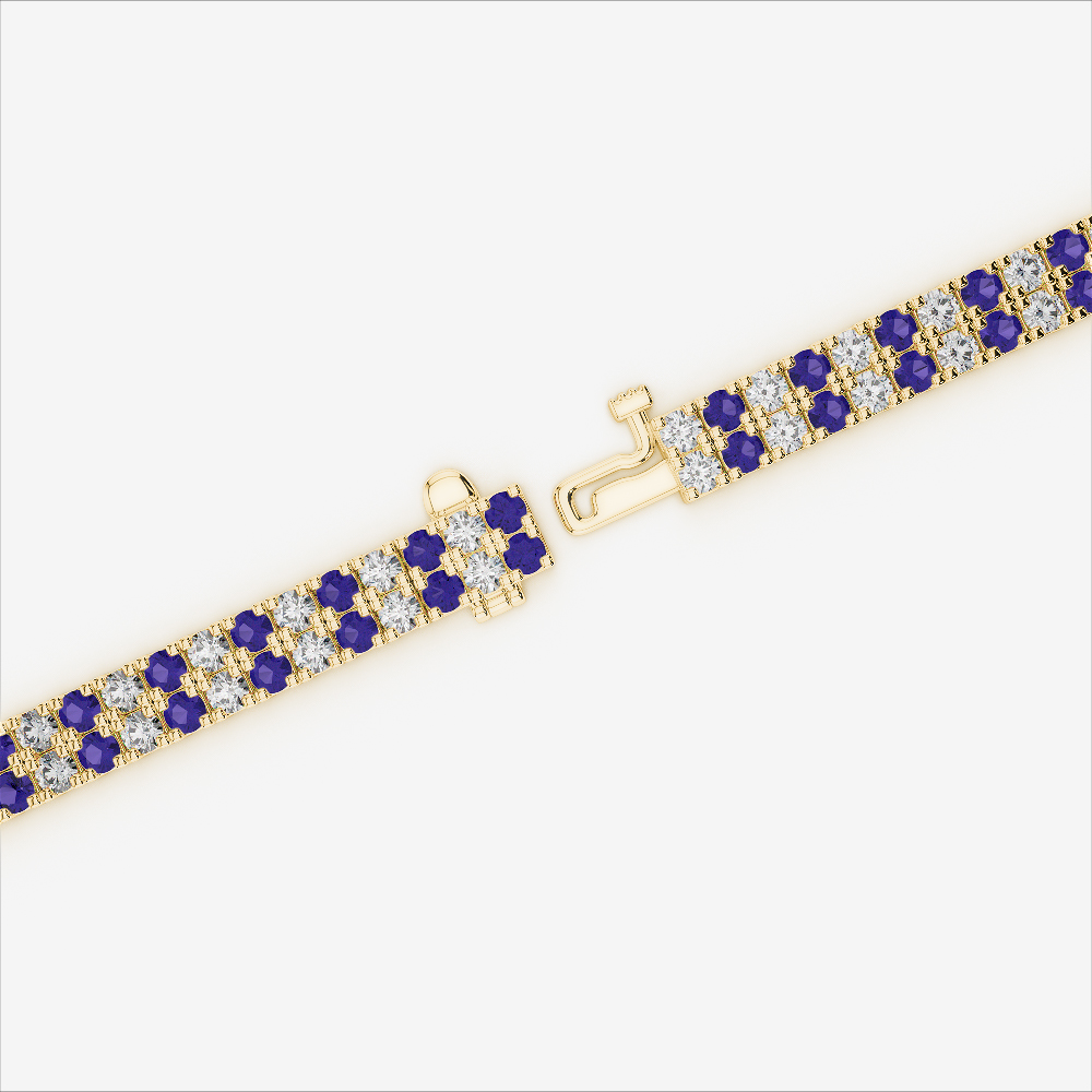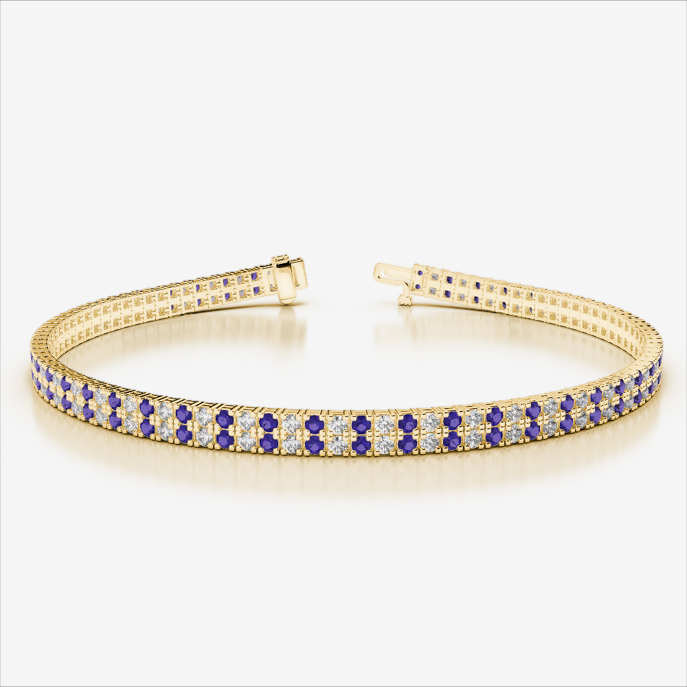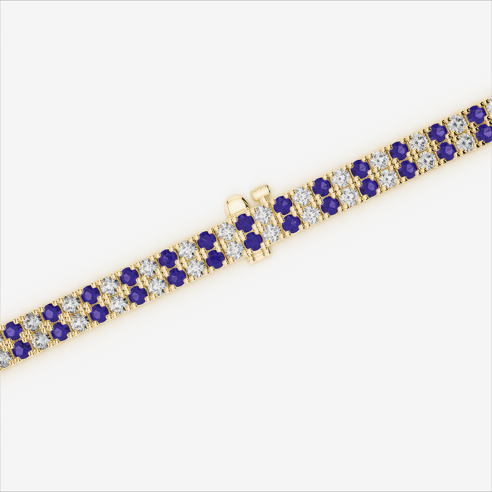 Presenting a distinguished piece of fine jewellery—the Double Row Pave Set Tanzanite and Diamond Bracelet. Featuring round-cut stones in secure prong settings, this bracelet offers a flawless balance of brilliance and craftsmanship. An ideal selection for significant occasions, it stands as a lasting symbol of elegance and refined taste.