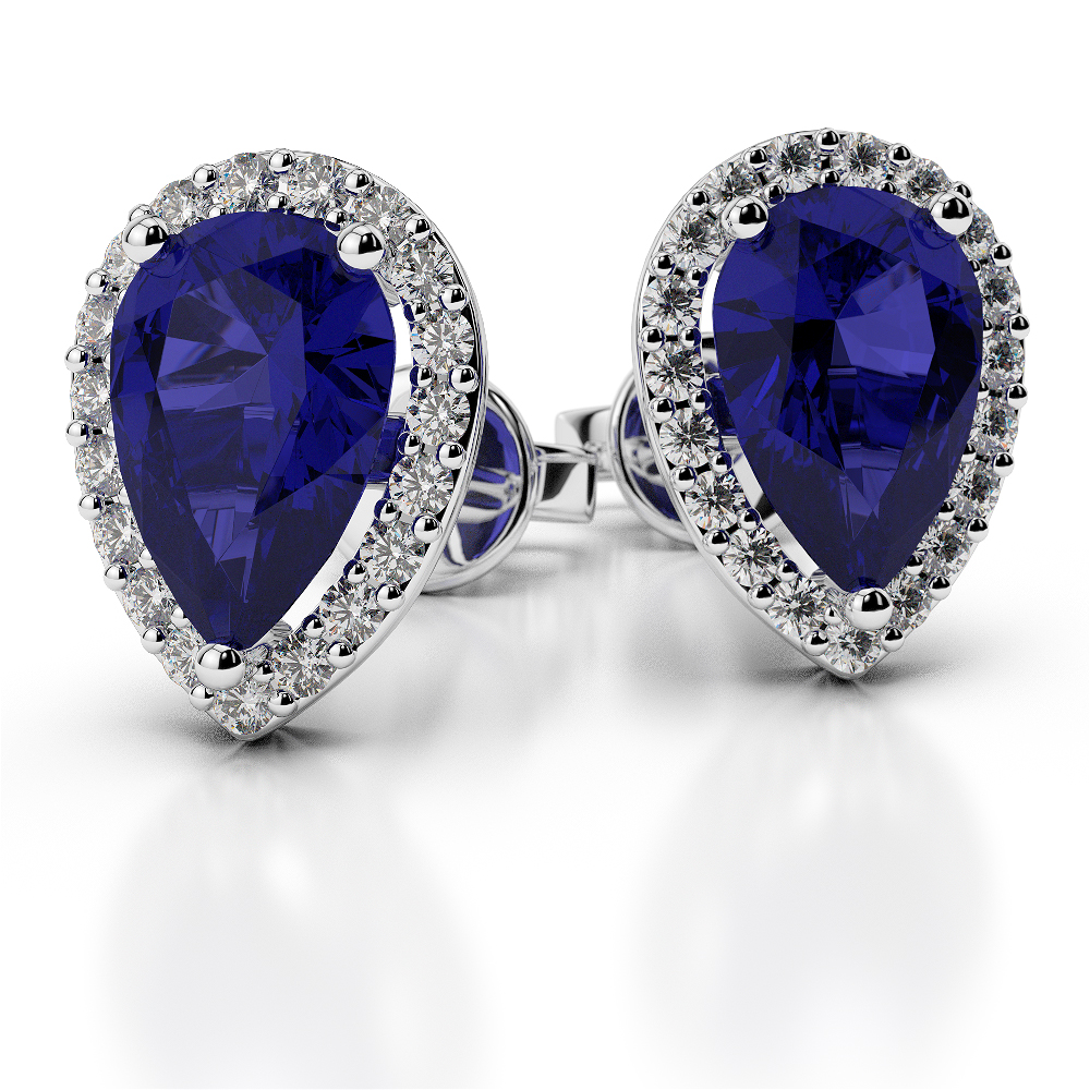 Pear Shape Blue Sapphire and Diamond Earrings 0479