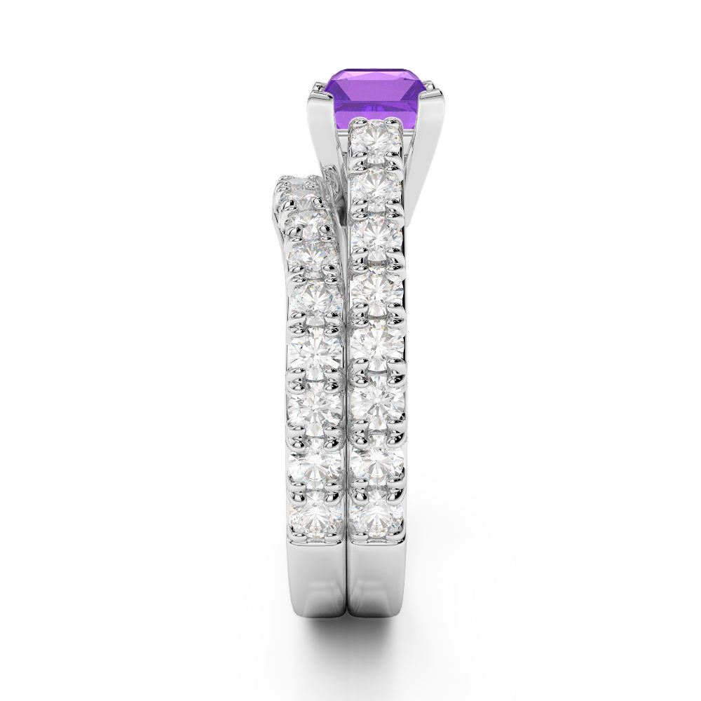Princess Cut Amethyst & Round Diamond Bridal Set Ring 0327