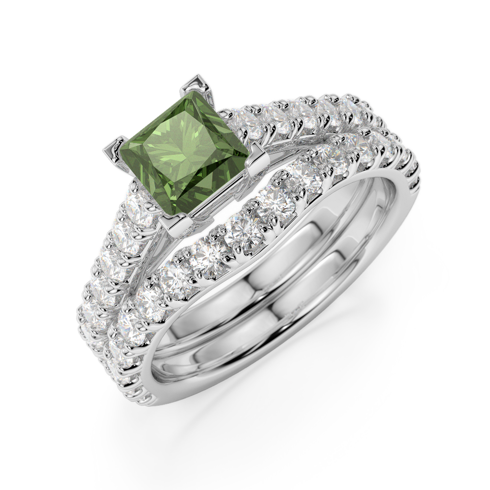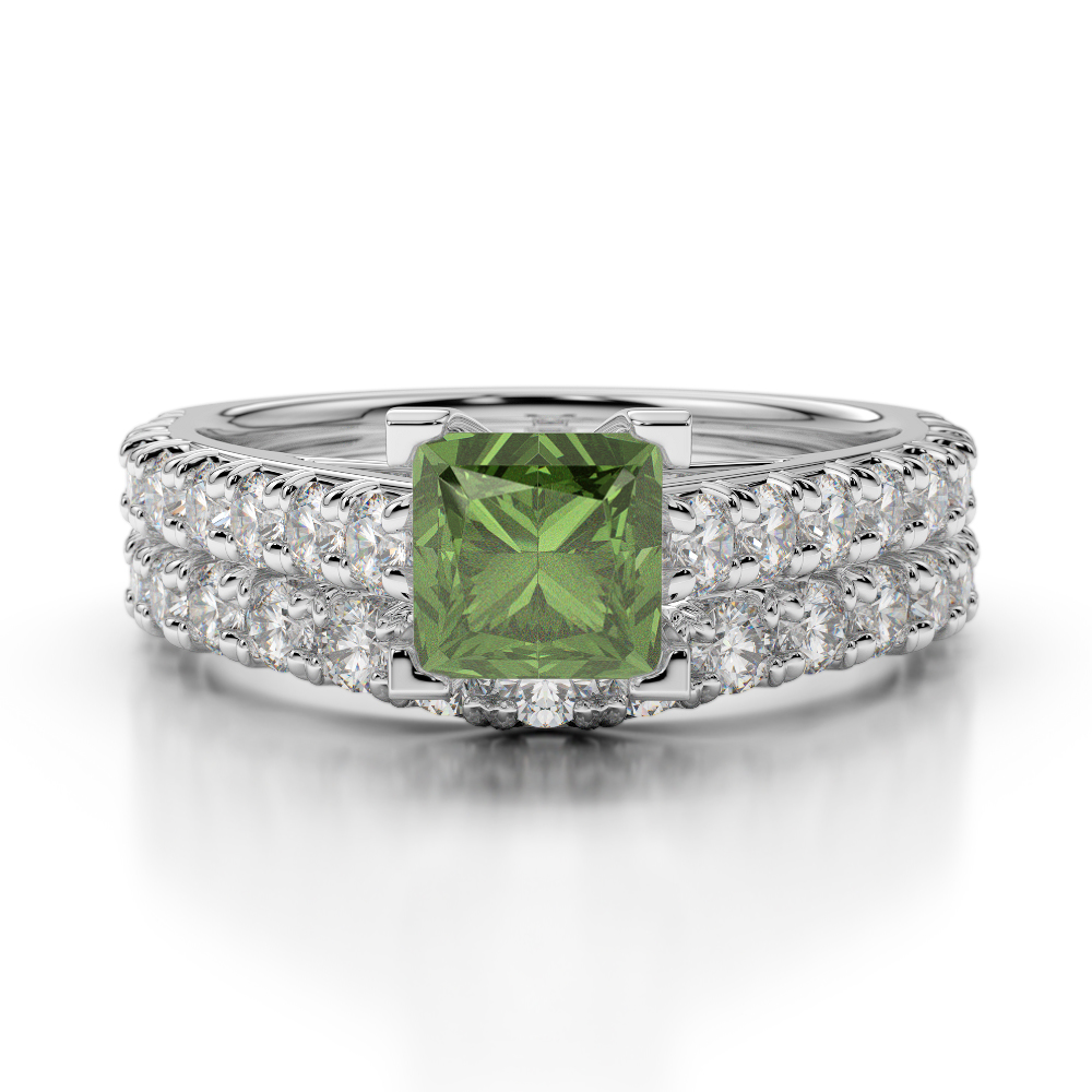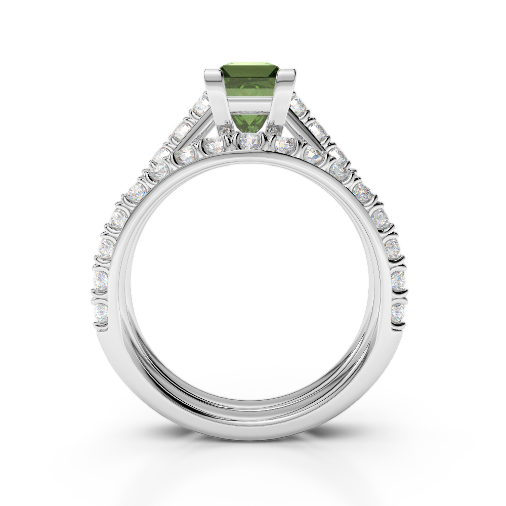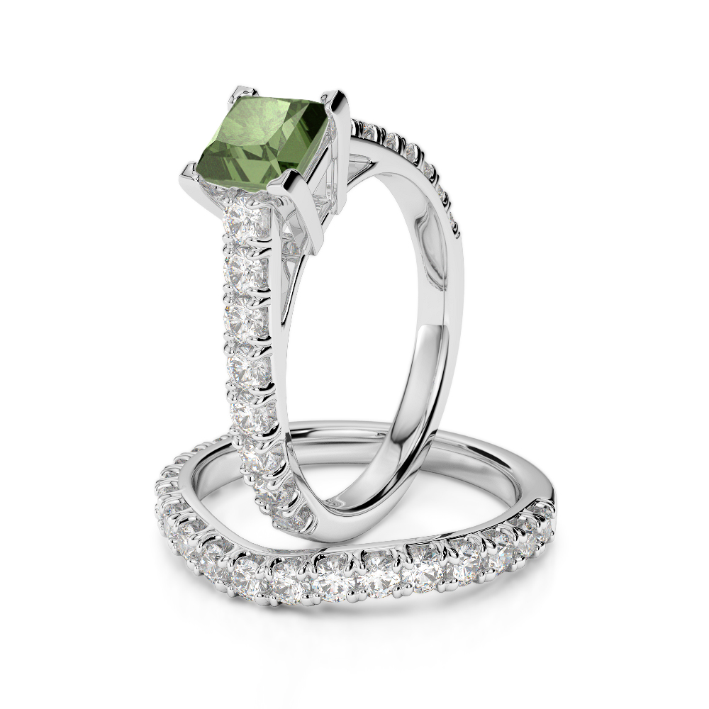 Princess Cut Green Tourmaline & Round Diamond Bridal Set Ring 0327