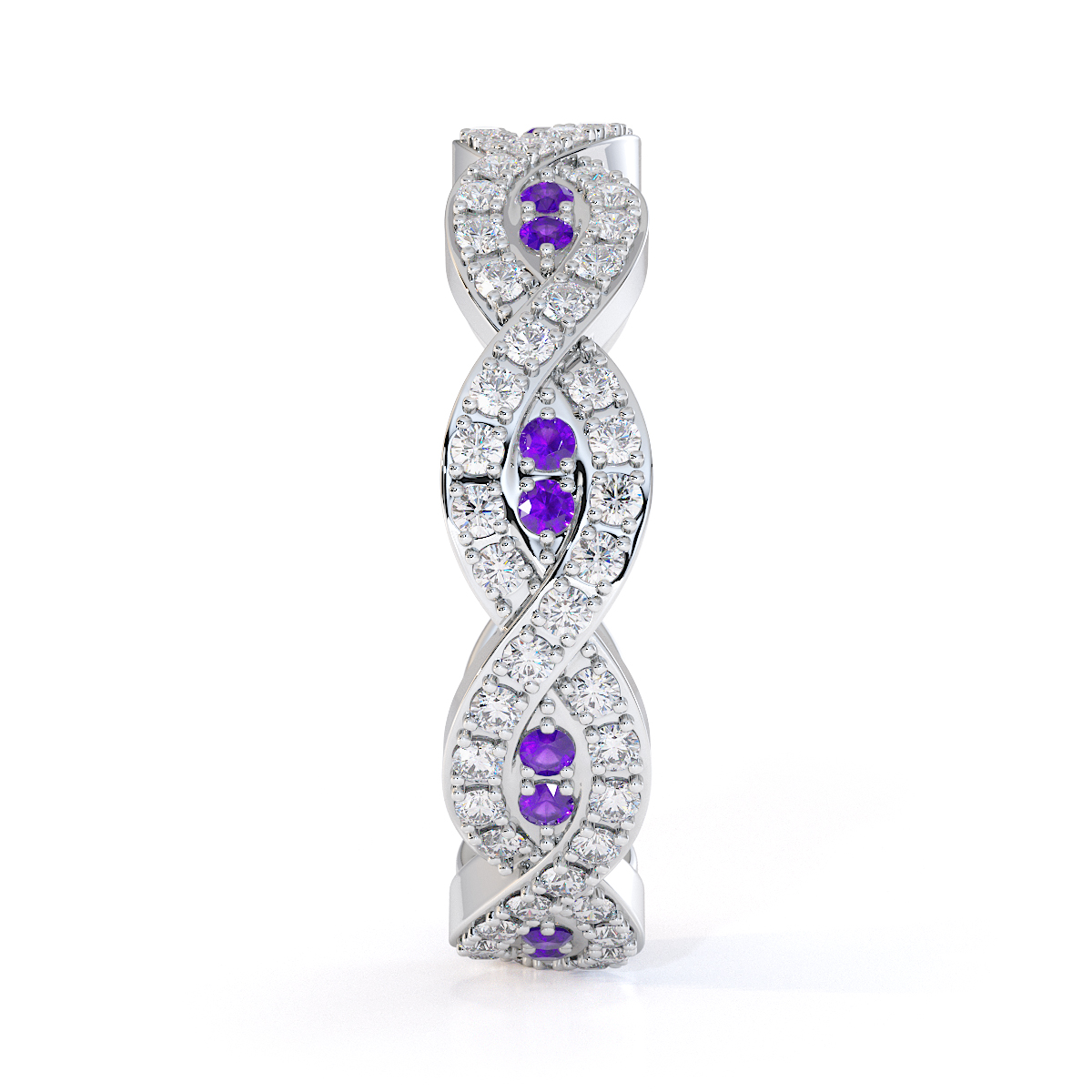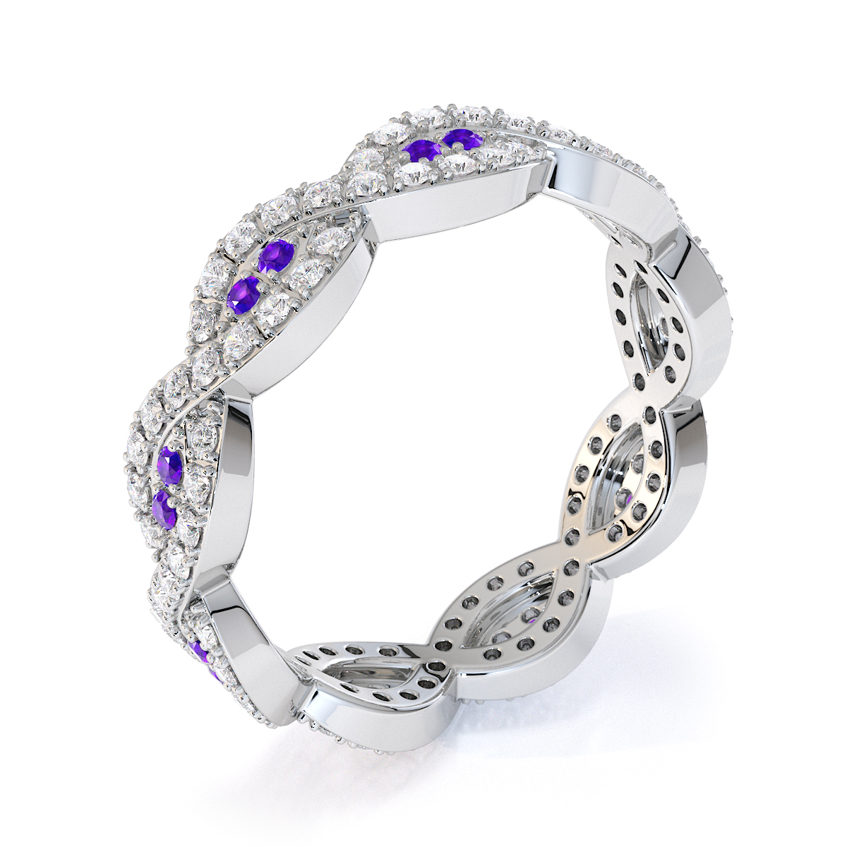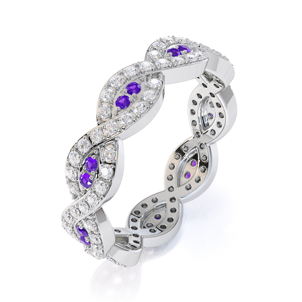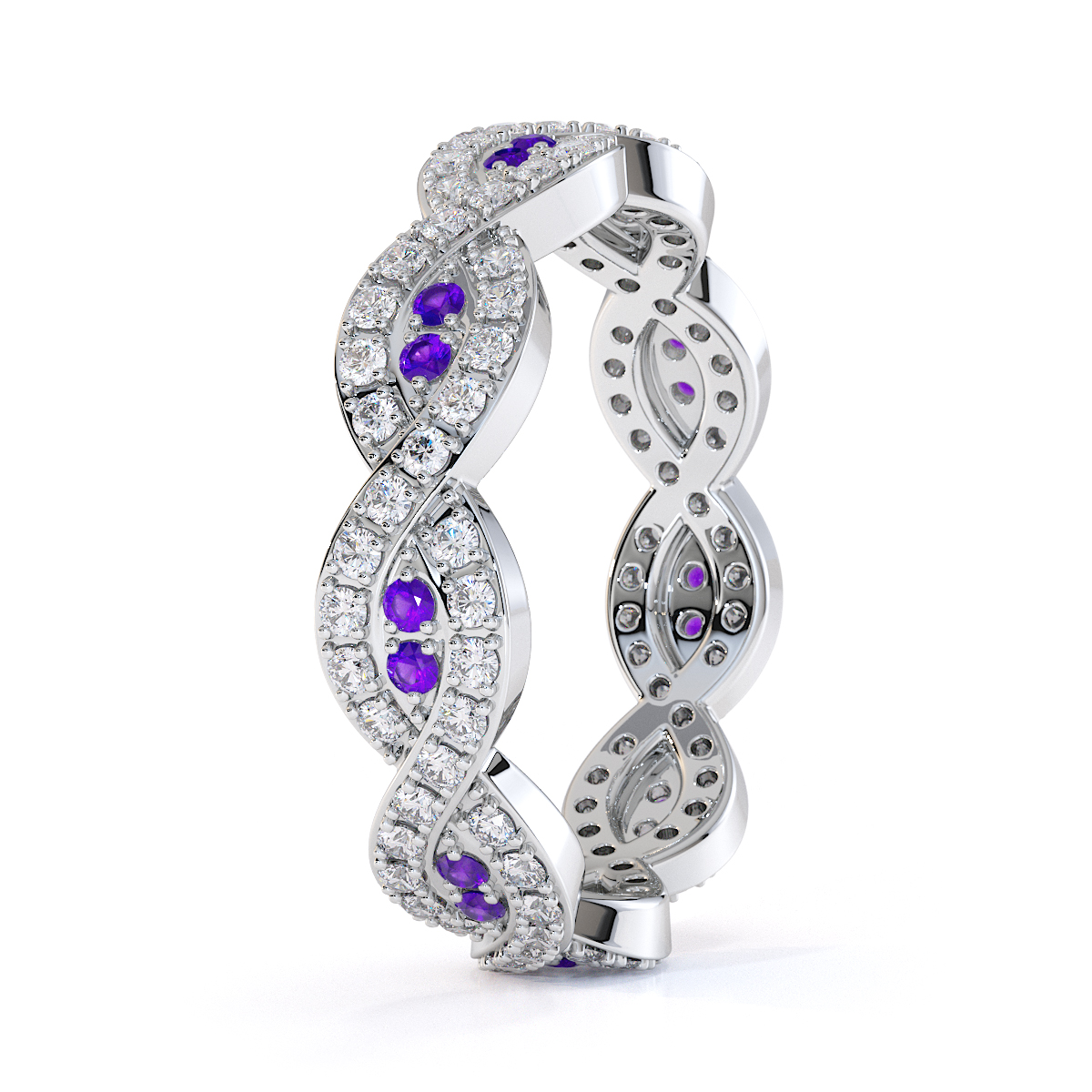 Prong Set Amethyst and Diamond Full Eternity Ring 0422