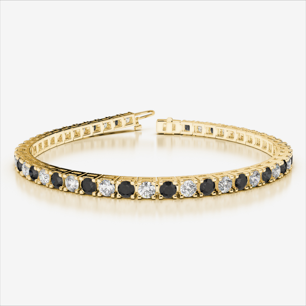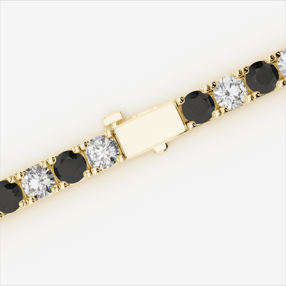 Make every moment shine with our round-cut black diamond and diamond tennis bracelet. The prong setting secures each stone beautifully, allowing light to dance across every black diamond and diamond. This timeless piece adds refined luxury to your wardrobe, ideal for day or evening wear. A perfect present for yourself or someone cherished—it brings elegance that speaks without words.