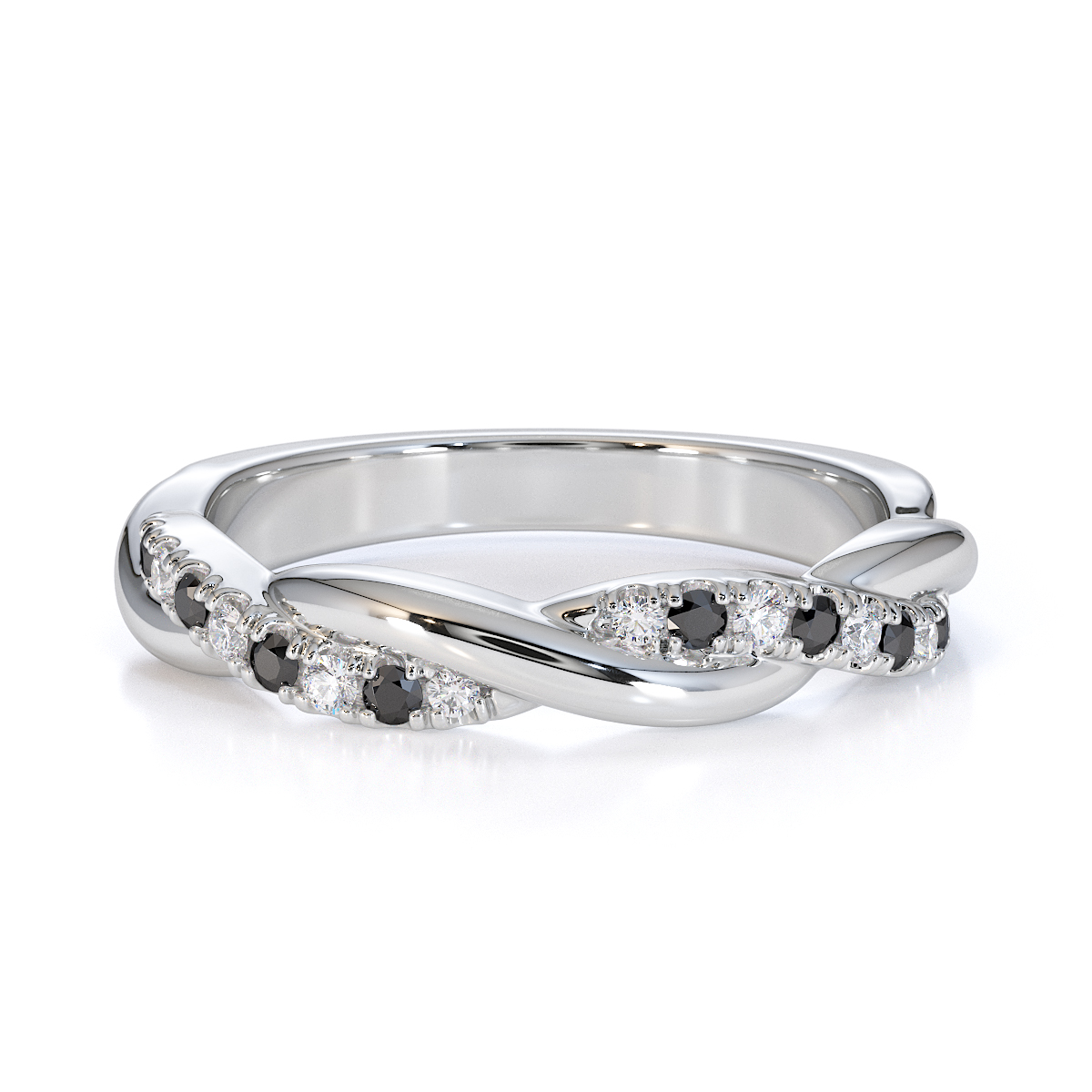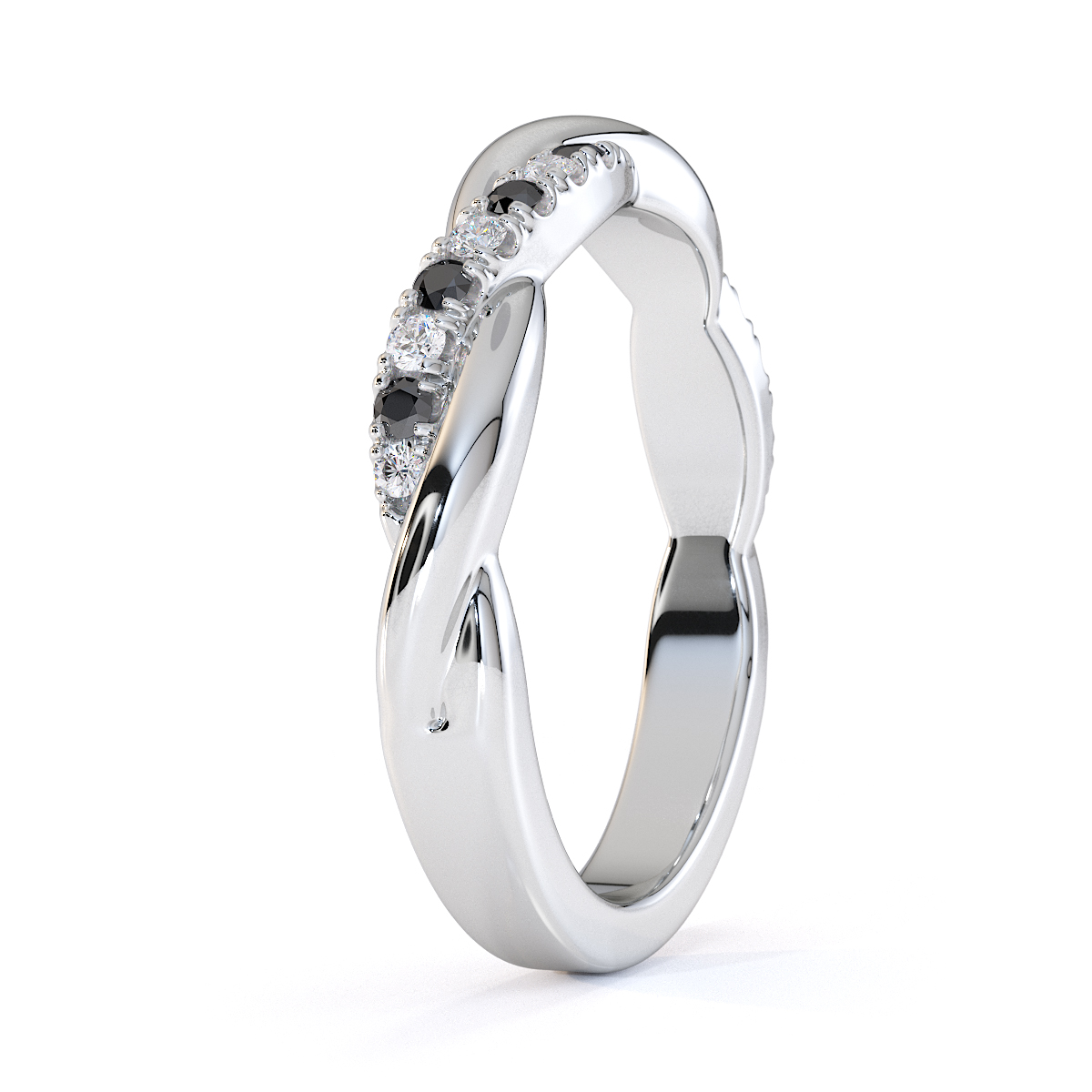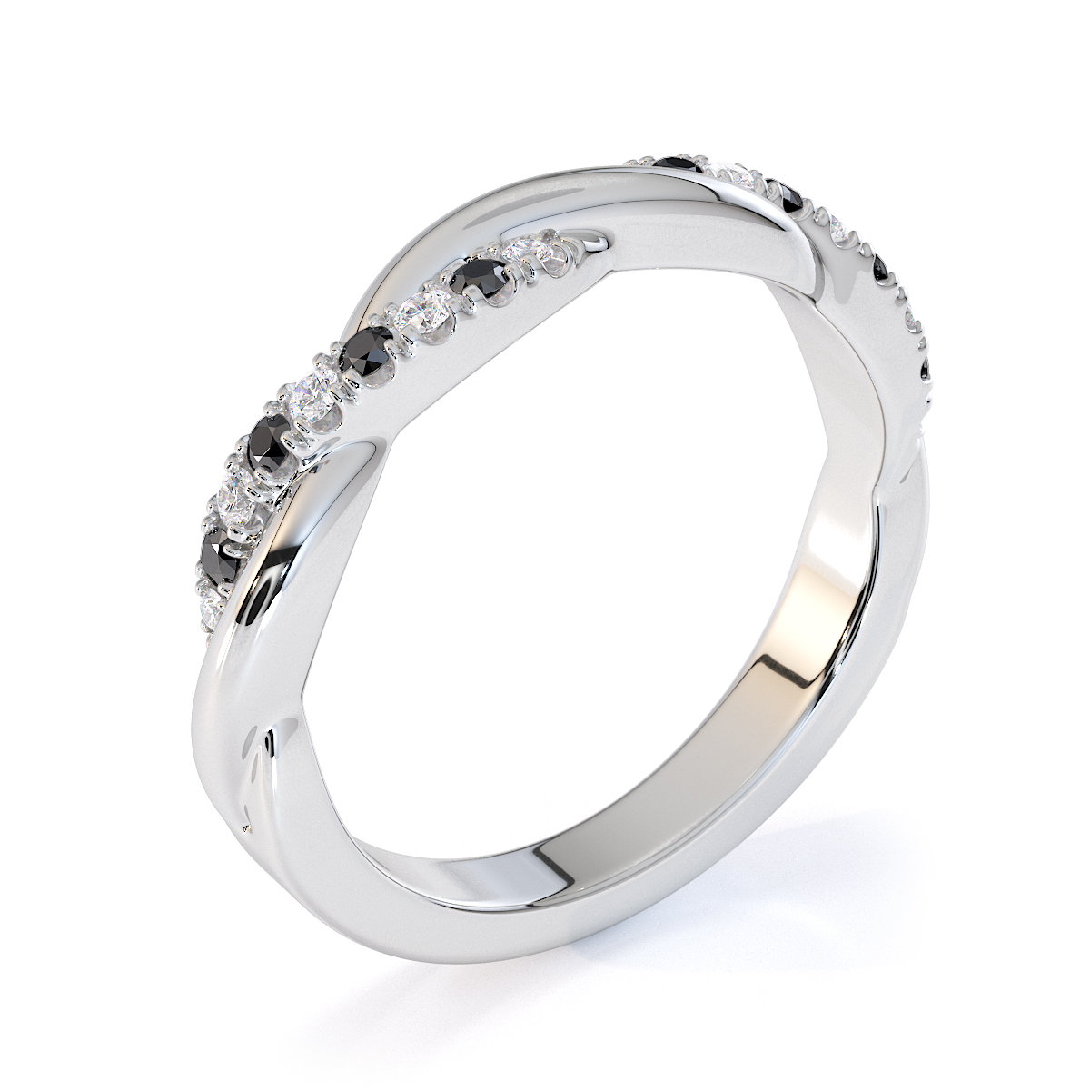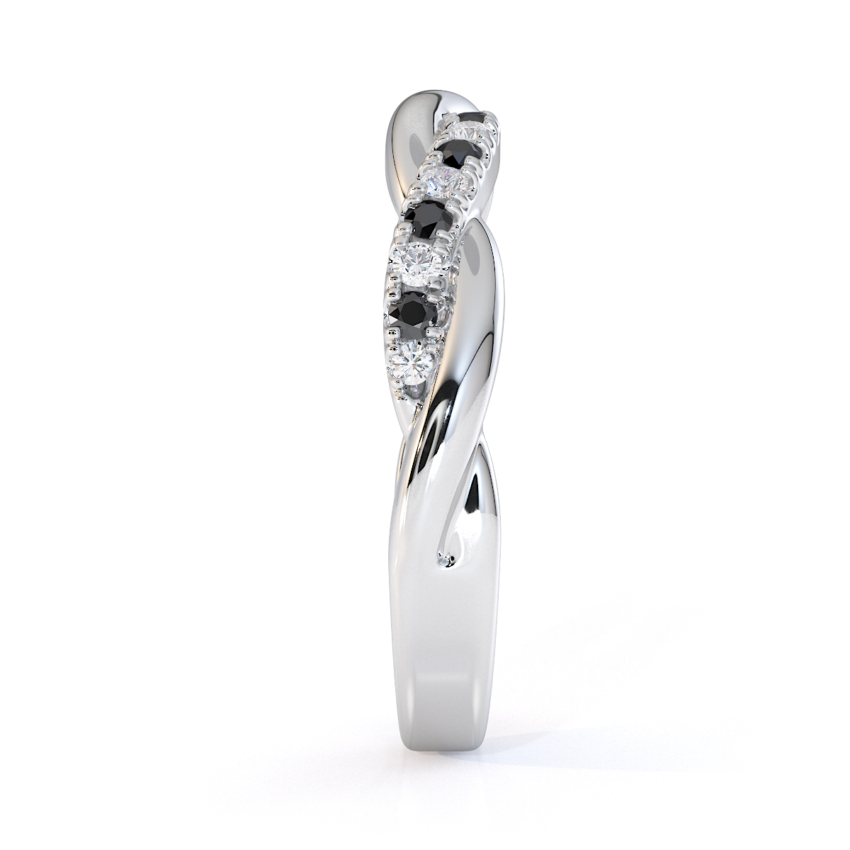 Introducing our exquisite ring adorned with stunning black diamonds and diamonds. Crafted with utmost precision, this half-eternity ring showcases the timeless beauty of black diamonds and the brilliance of diamonds. The split prong setting enhances the elegance of this piece, ensuring a secure and comfortable fit. Perfect for any occasion, this ring is a true symbol of sophistication and luxury.