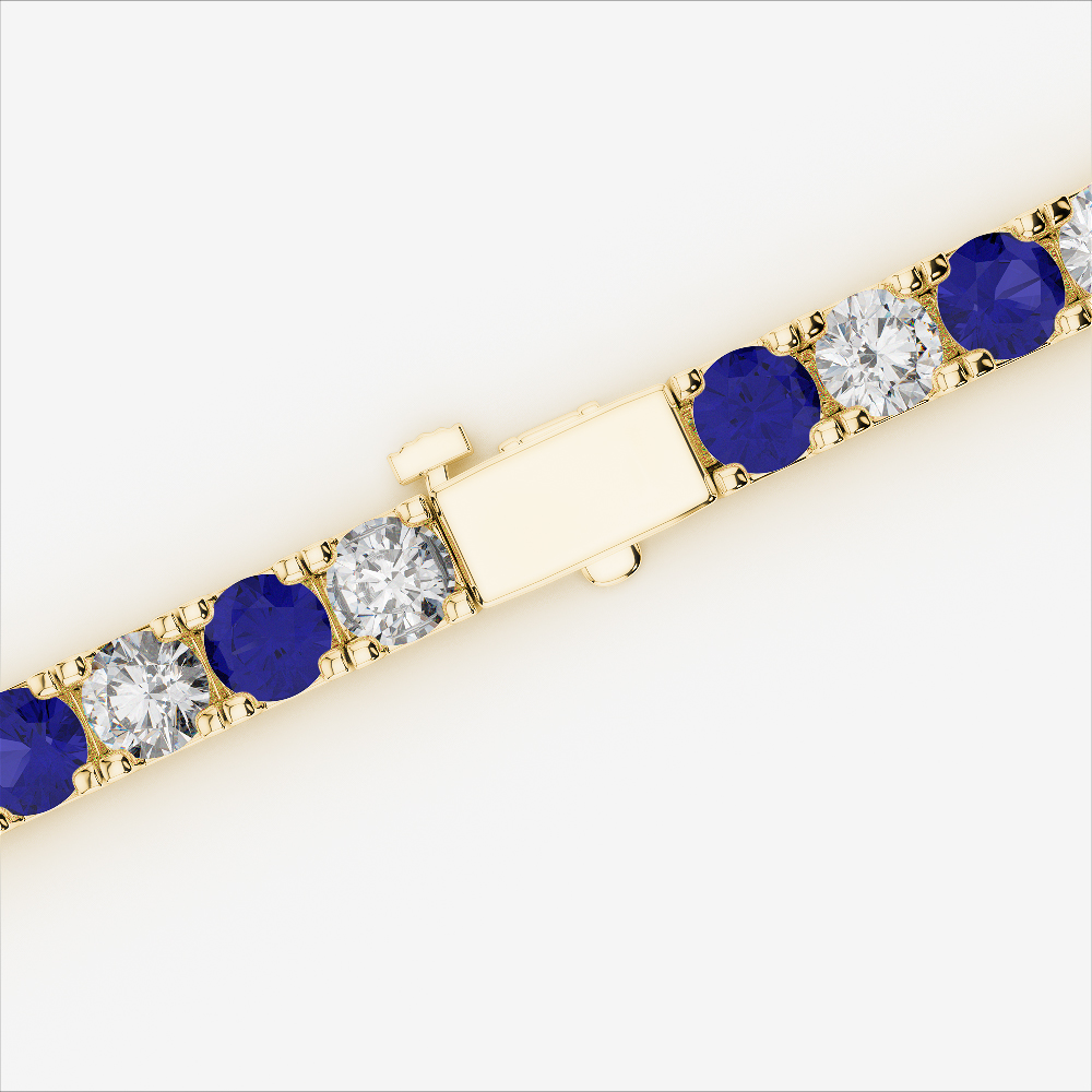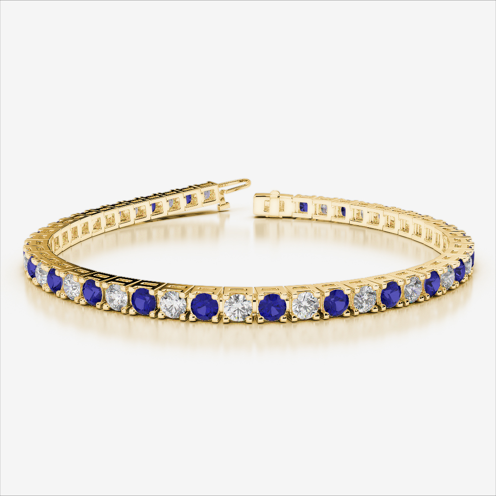 Make every moment shine with our round-cut blue sapphire and diamond tennis bracelet. The prong setting secures each stone beautifully, allowing light to dance across every blue sapphire and diamond. This timeless piece adds refined luxury to your wardrobe, ideal for day or evening wear. A perfect present for yourself or someone cherished—it brings elegance that speaks without words.