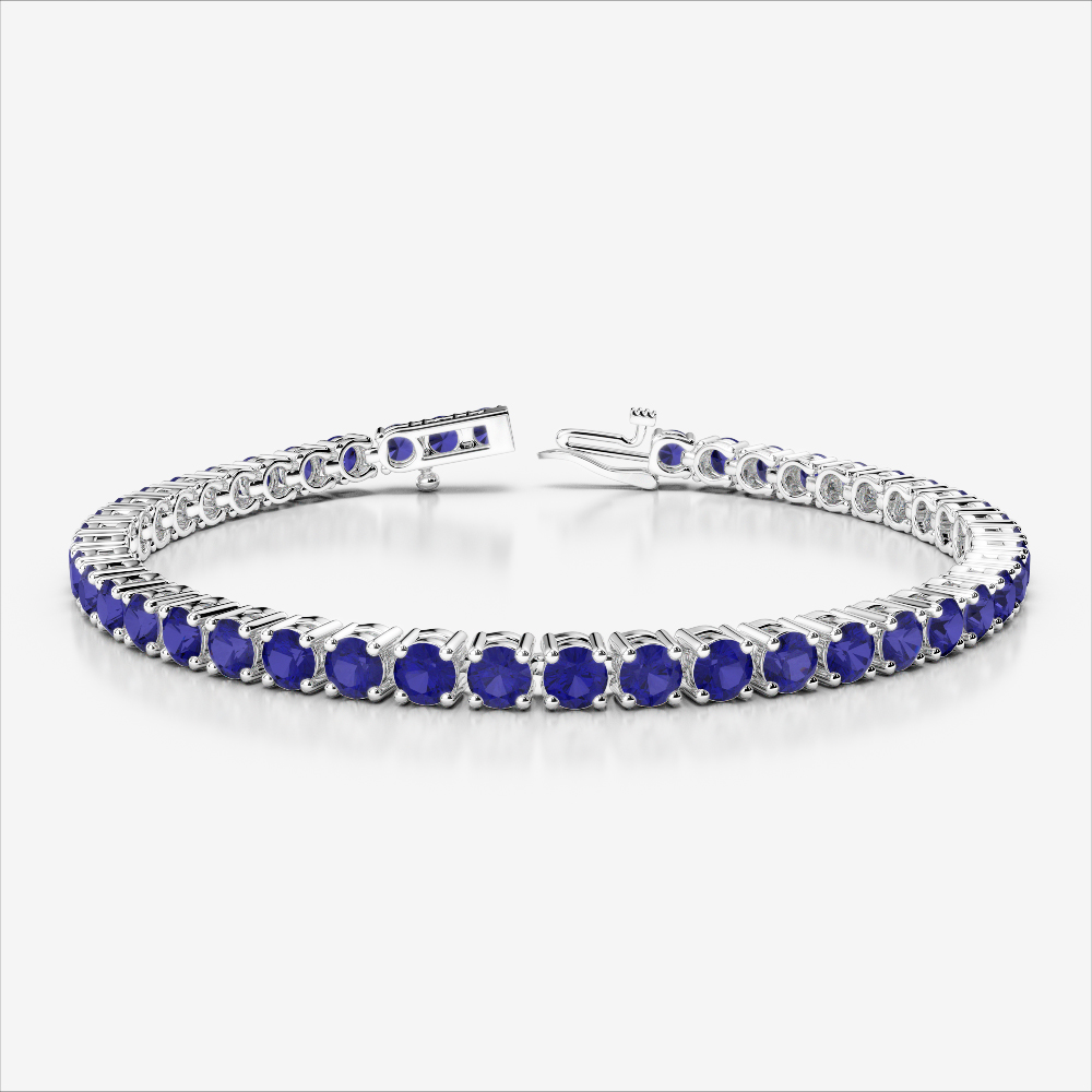 Celebrate enduring style with this Round Cut Blue Sapphire Tennis Bracelet. Every Blue Sapphire is handpicked for brilliance and clarity, set to allow maximum light play. The prong setting enhances sparkle while maintaining a refined aesthetic, offering a perfect blend of timeless elegance and contemporary sophistication.