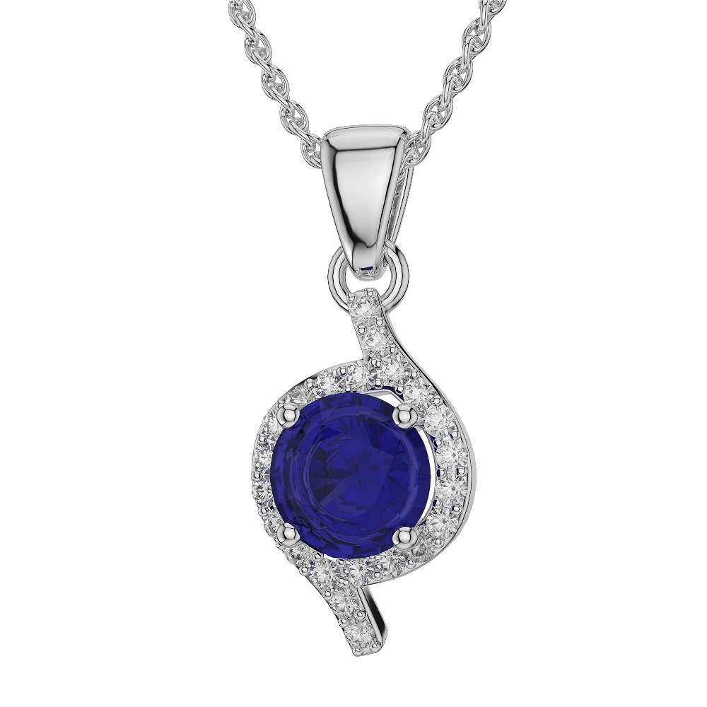 Prong Set Blue Sapphire Necklaces With Diamond 0574