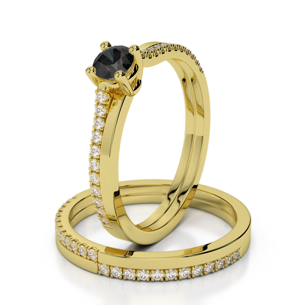 Prong Set Bridal Set Ring With Black Diamond 0298