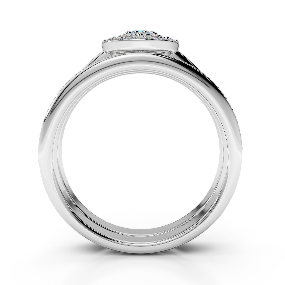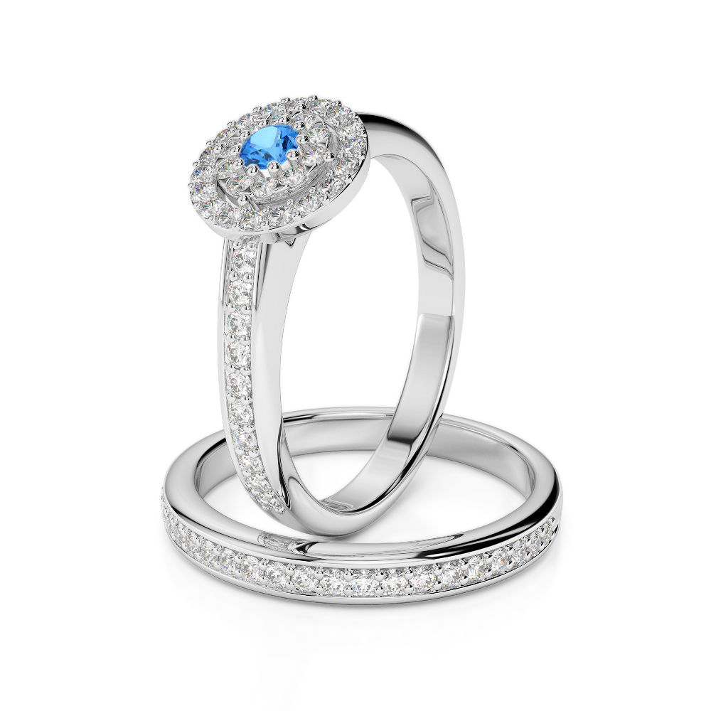 Prong Set Bridal Set Ring With Blue Topaz & Diamond 0321