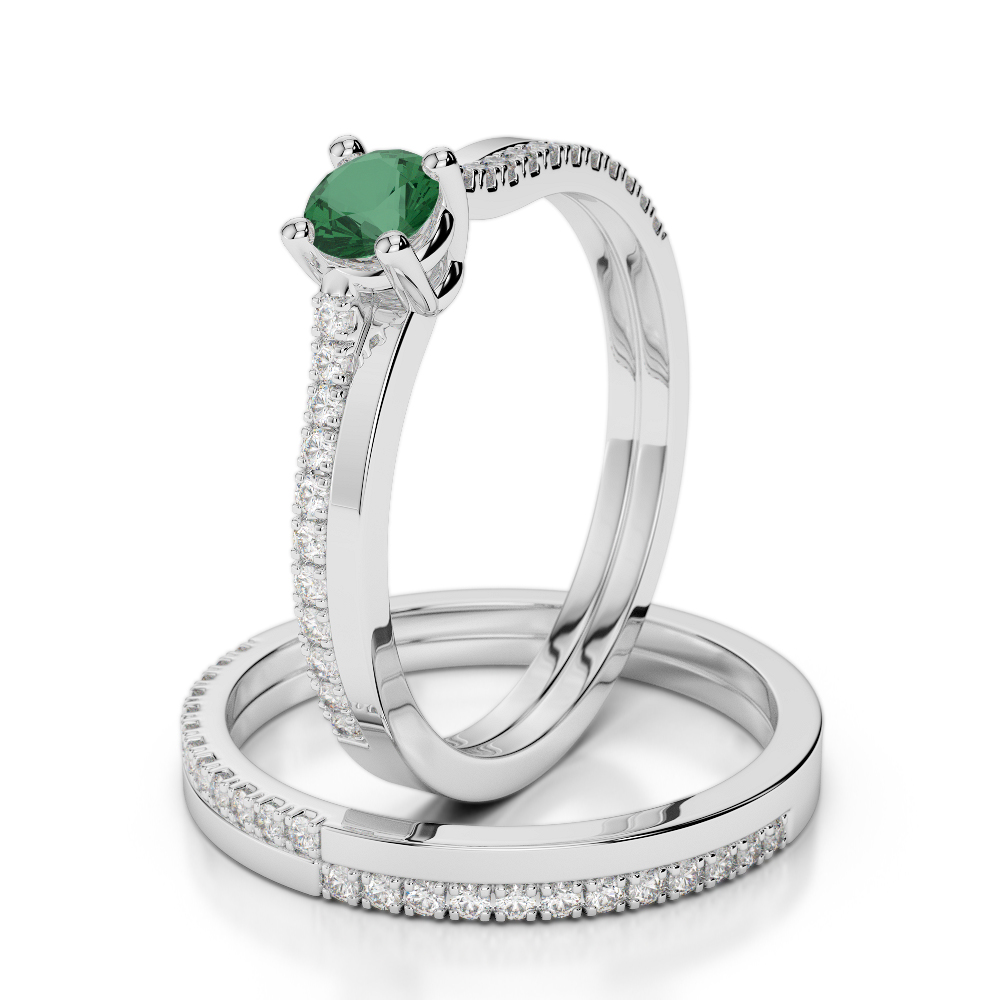 Prong Set Bridal Set Ring With Diamond and Emerald 0298