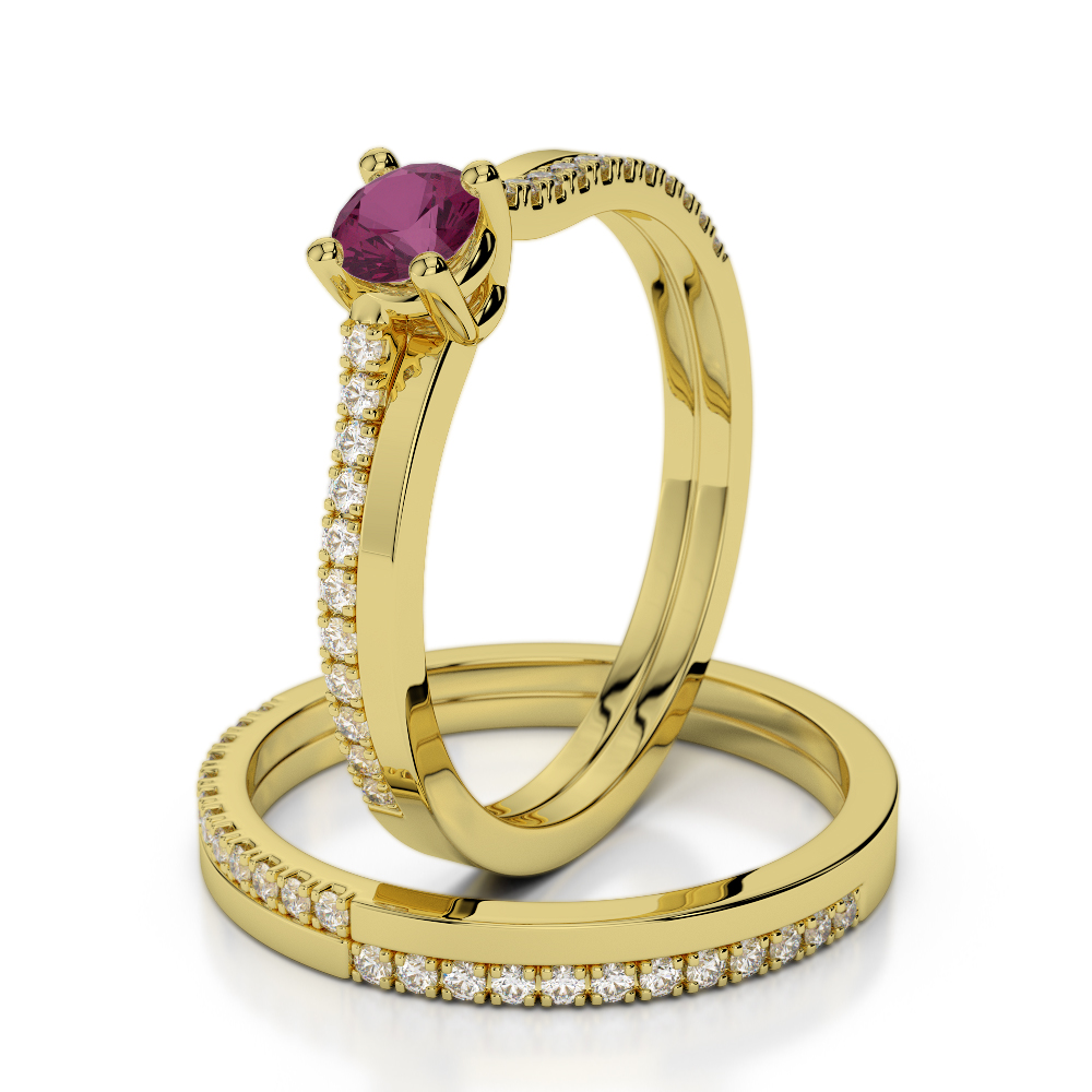 Prong Set Bridal Set Ring With Diamond and Ruby 0298