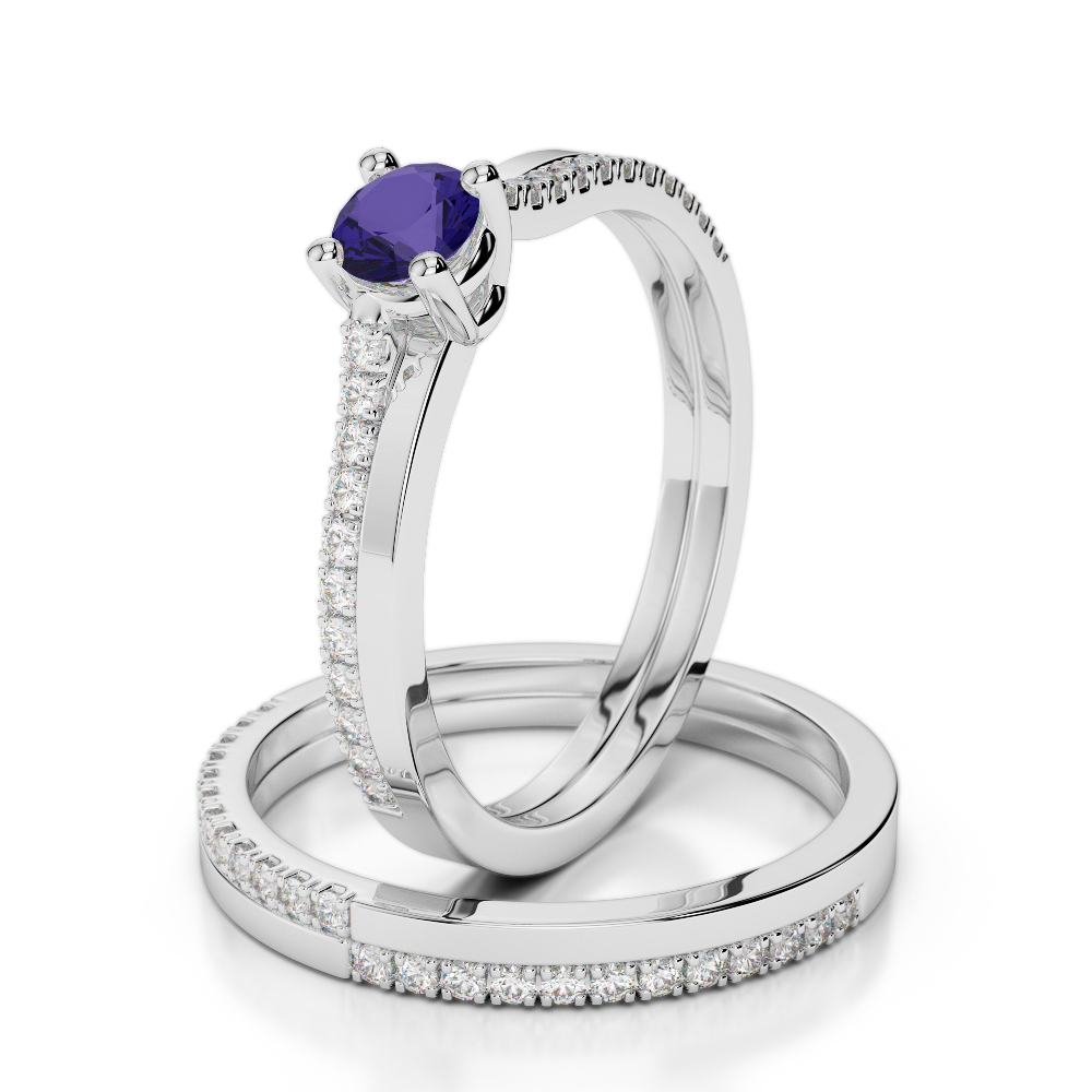 Prong Set Bridal Set Ring With Diamond and Tanzanite 0298