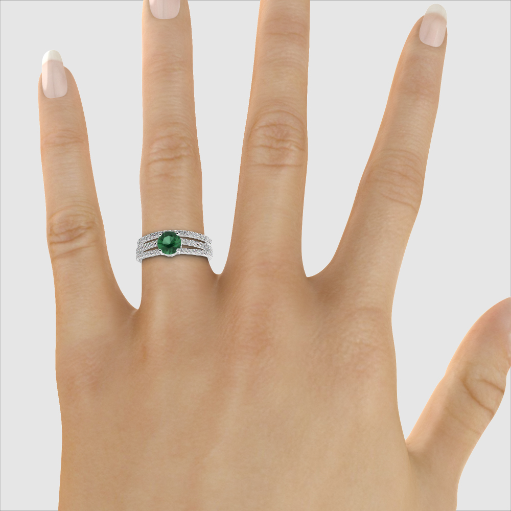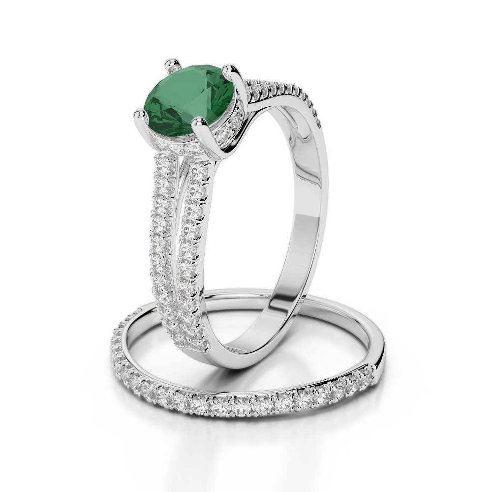 Prong Set Bridal Set Ring With Emerald and Diamond 0341
