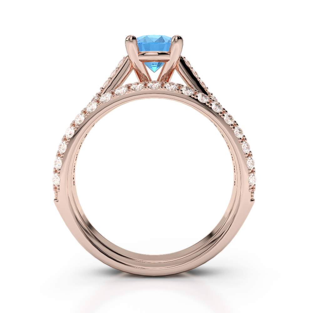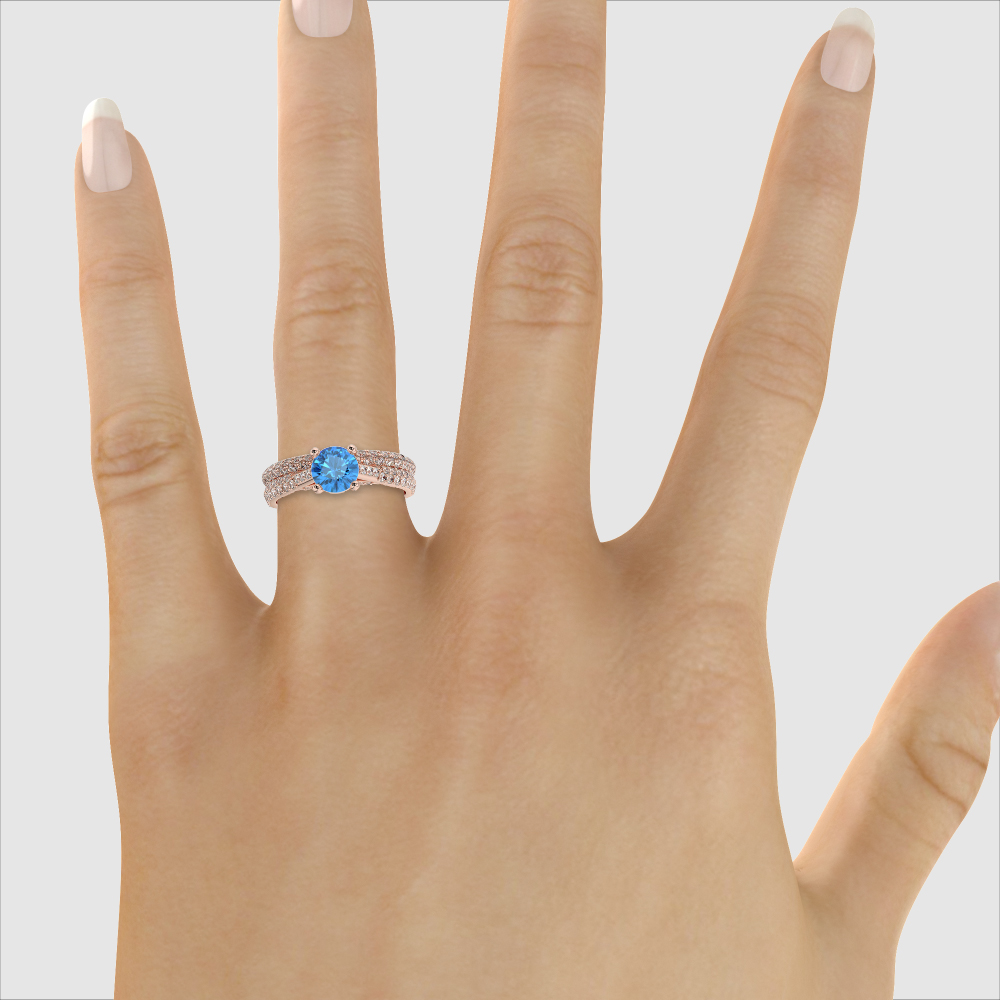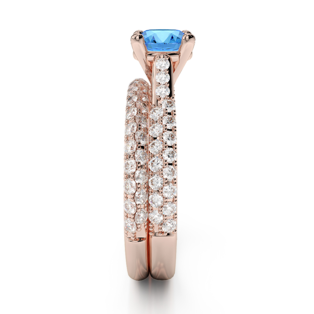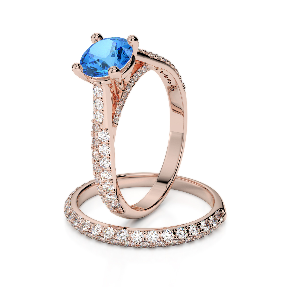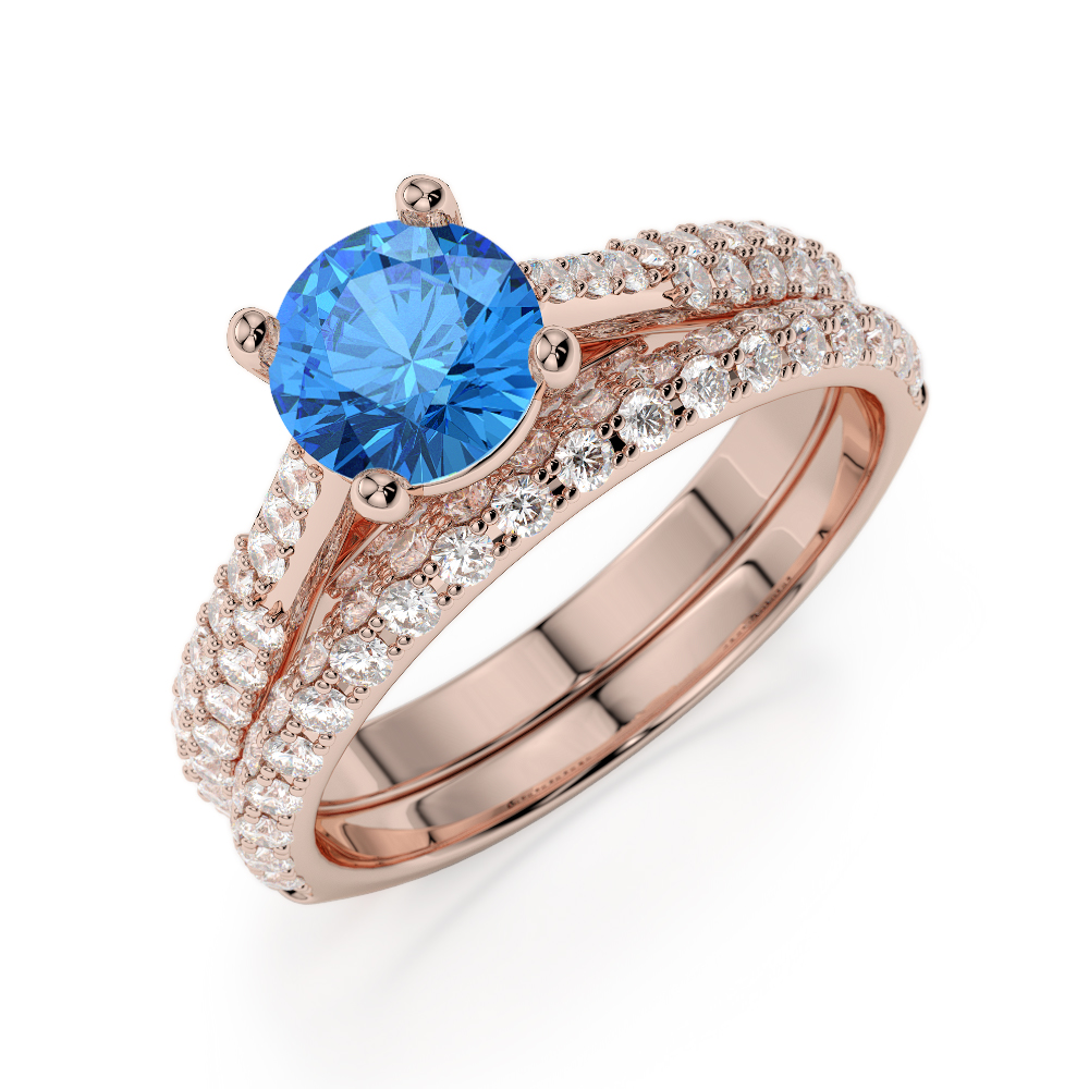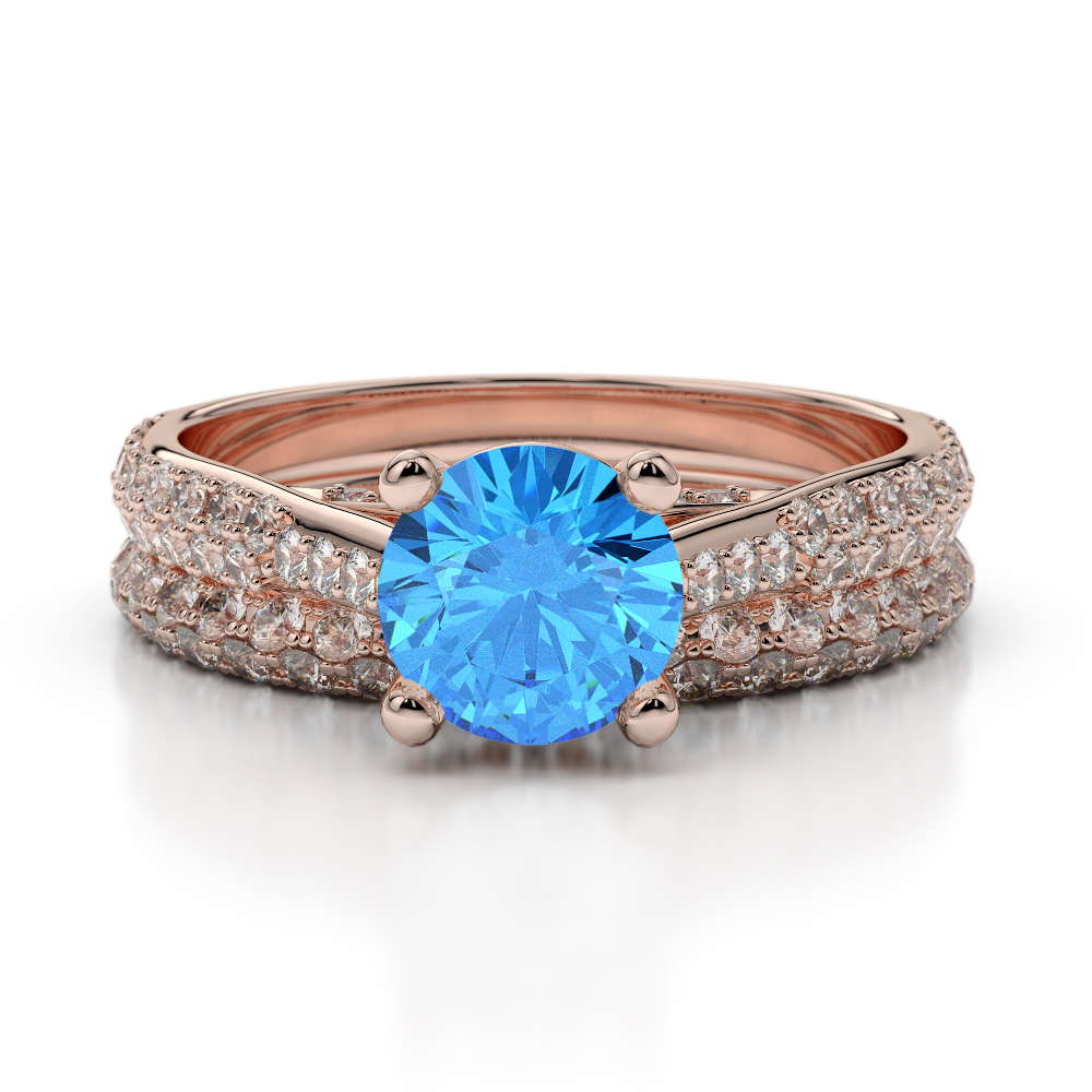 Prong Set Diamond and Blue Topaz Bridal Set Ring 0330