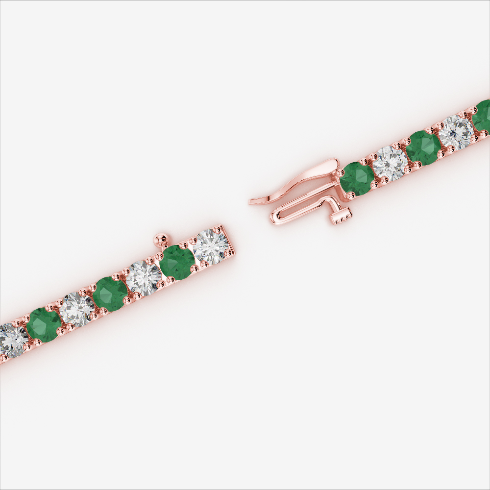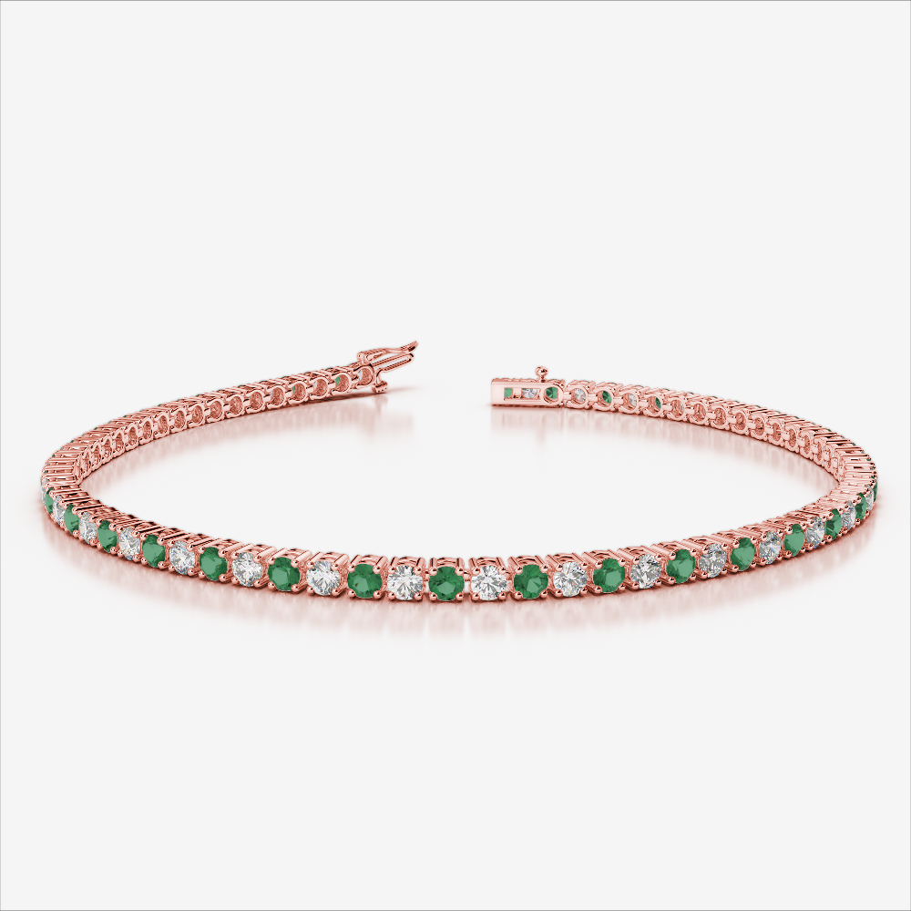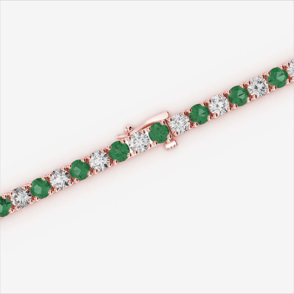 Add a touch of elegance to any ensemble with this exquisite prong-set bracelet. Featuring dazzling round-cut emeralds and diamonds, it radiates sophistication and classic charm. Perfect for any occasion, its timeless sparkle and refined design make it a must-have piece for those who appreciate luxury and enduring beauty.