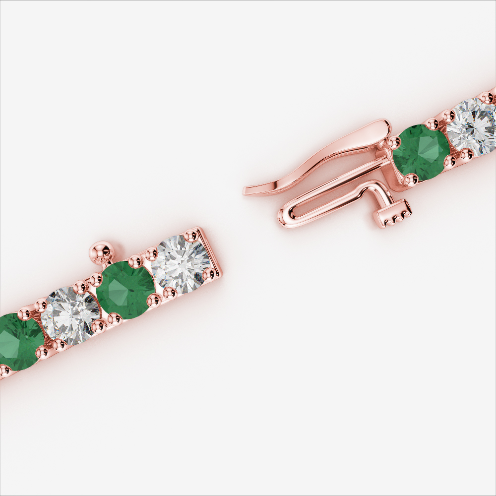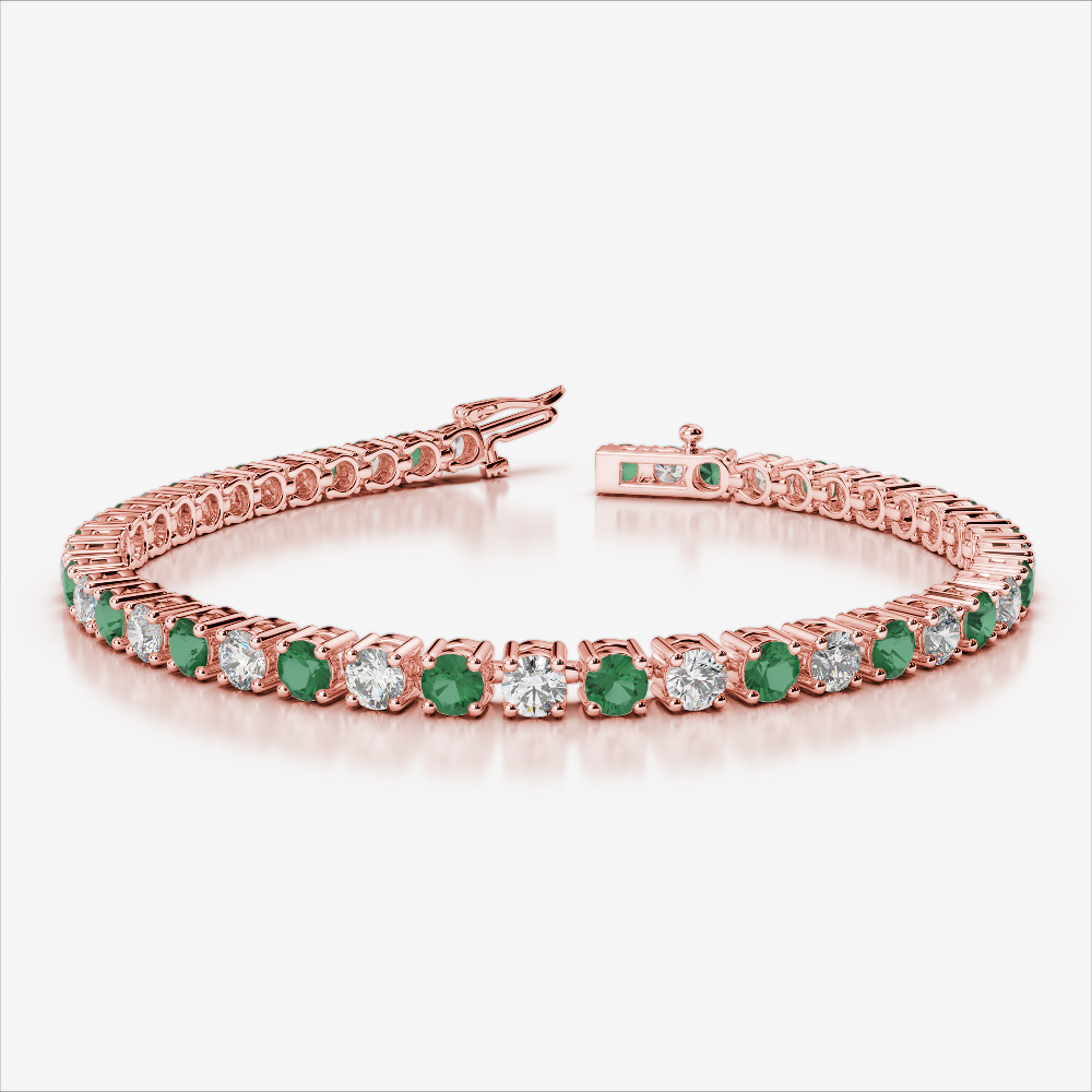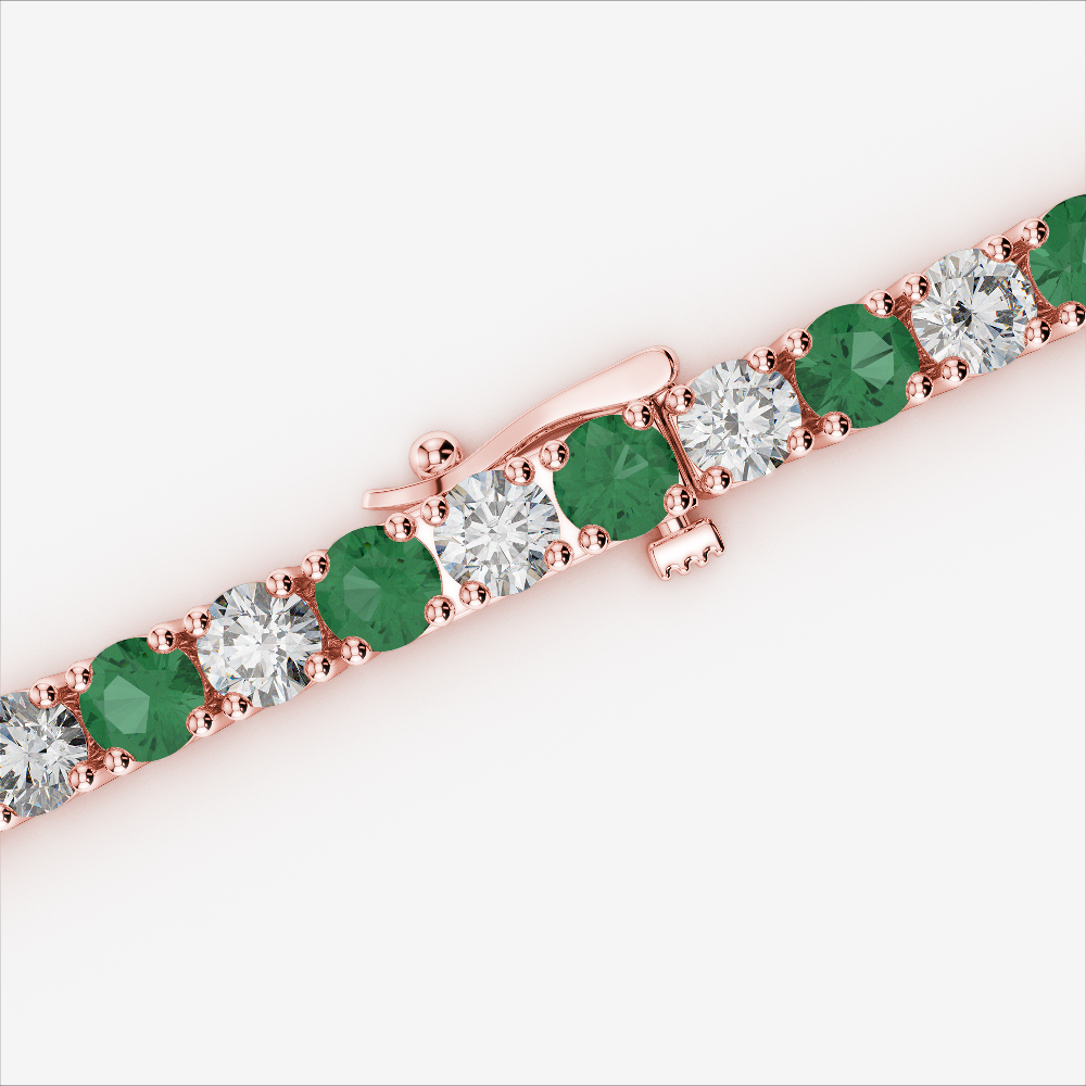 Add timeless charm to your collection with our prong-set round-cut emerald and diamond tennis bracelet. Carefully crafted, each stone sparkles with brilliance and depth. The vibrant emeralds contrast beautifully against the clear diamonds, creating a refined aesthetic. This elegant piece is perfect for celebrating milestones or simply indulging in everyday luxury. A true symbol of style and sentiment.
