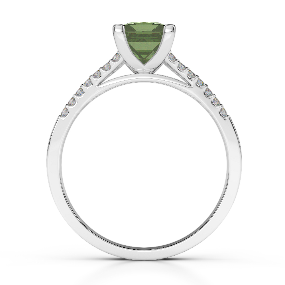 Prong Set Diamond and Green Tourmaline Engagement Ring 0209