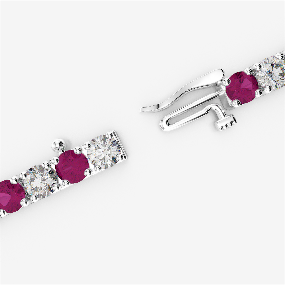 Add timeless charm to your collection with our prong-set round-cut ruby and diamond tennis bracelet. Carefully crafted, each stone sparkles with brilliance and depth. The vibrant rubiescontrast beautifully against the clear diamonds, creating a refined aesthetic. This elegant piece is perfect for celebrating milestones or simply indulging in everyday luxury. A true symbol of style and sentiment.