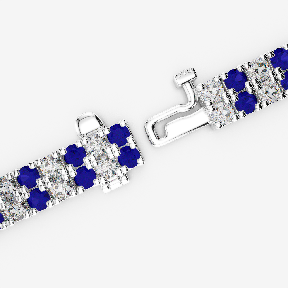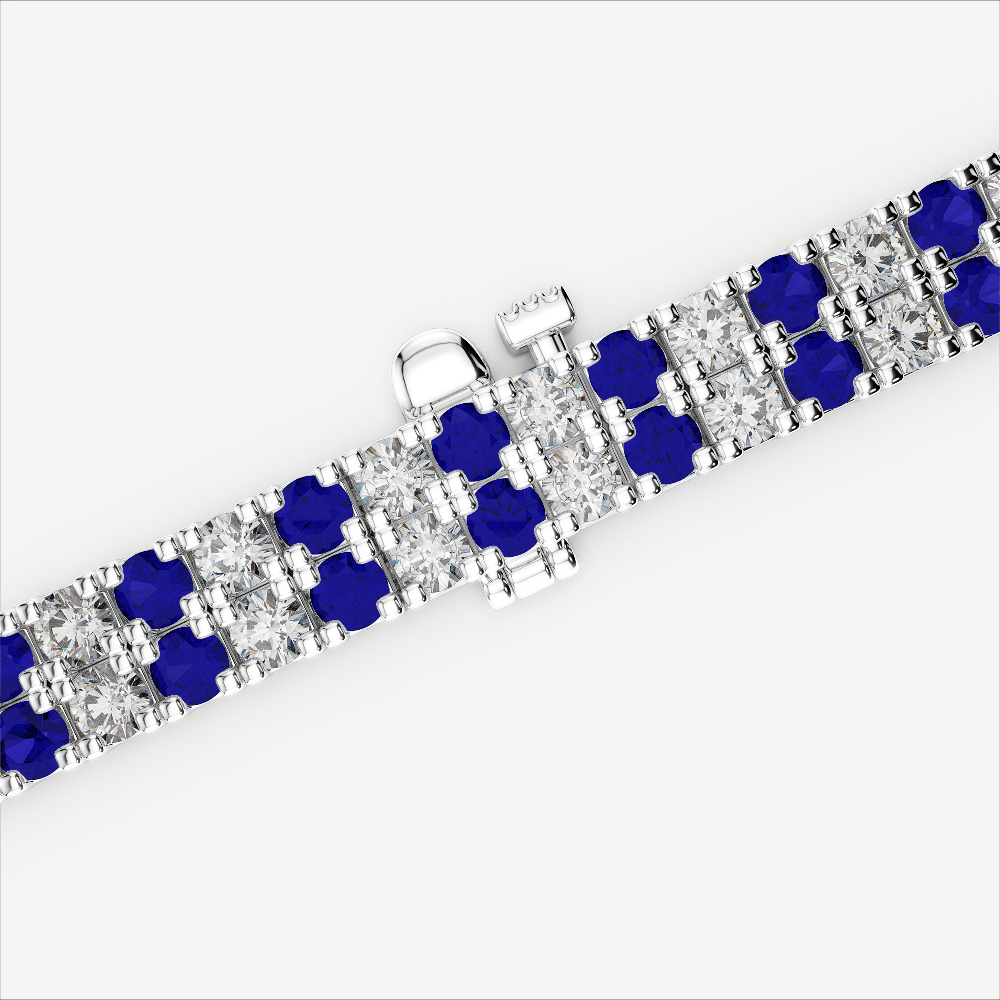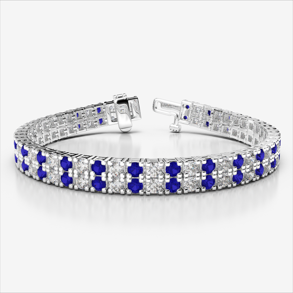 With its graceful composition, the Double Row Prong Set Blue Sapphire and diamond bracelet exemplifies formal elegance. Prong-set round-cut stones shine with distinction, making it an impeccable accessory for black-tie events, weddings, or executive occasions. A true celebration of refined artistry.