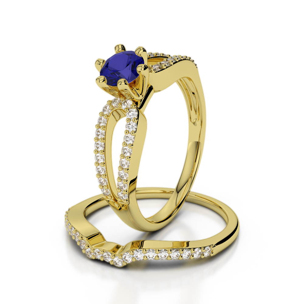 Prong Set Diamond Bridal Set Ring With Blue Sapphire 0303