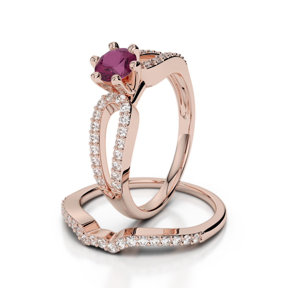 Prong Set Diamond Bridal Set Ring With Ruby 0303