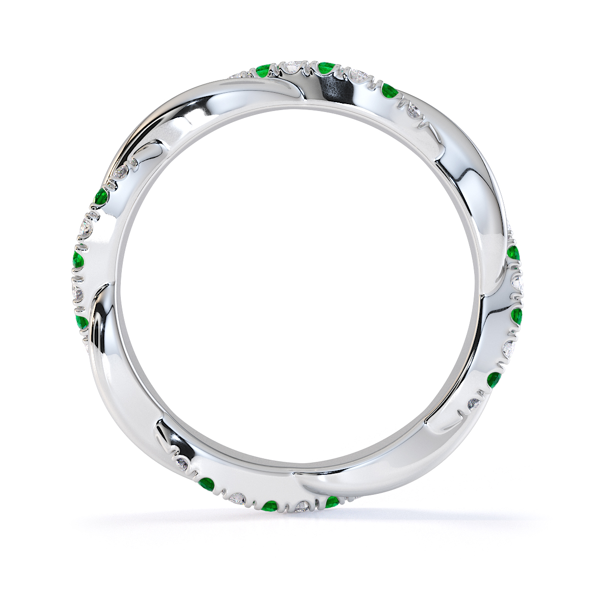 Prong Set Diamond & Emerald Full Eternity Ring 0446