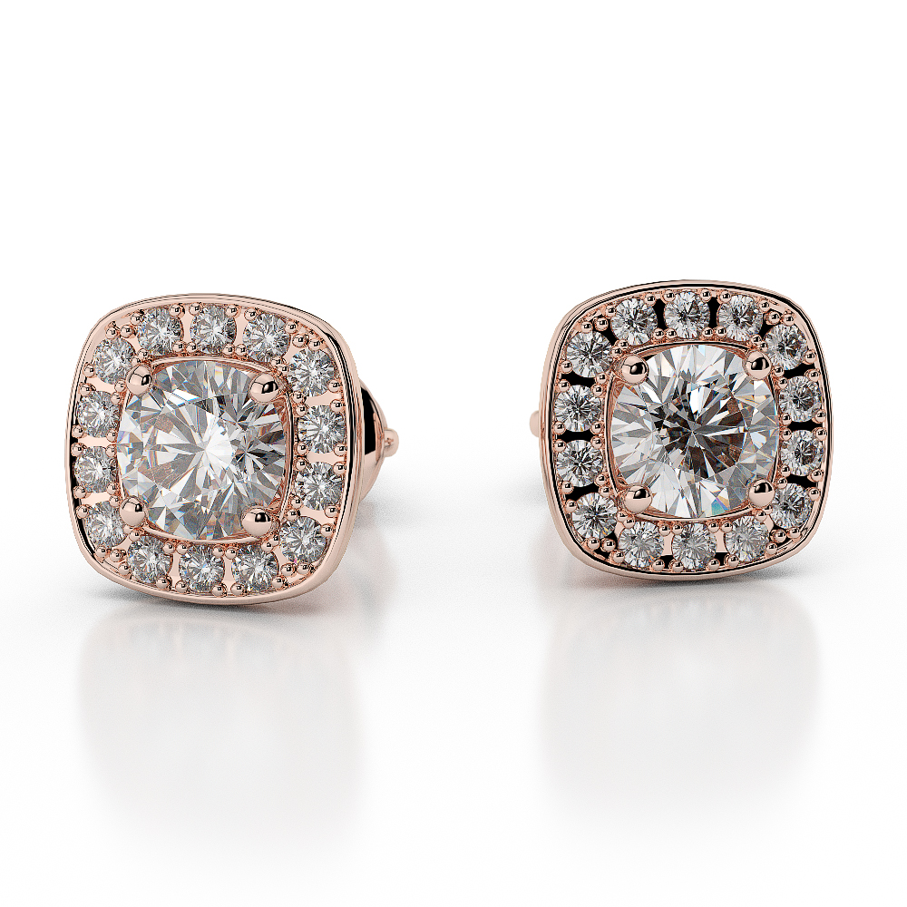 With their round brilliant cut diamonds, these halo earrings are a gorgeous accent to any ensemble. They firmly hold the diamonds in a prong setting, letting the most light possible to accentuate their brilliance. The diamonds are framed by the halo design, which gives a touch of elegance and stunning brightness. Manufactured with great care and accuracy.