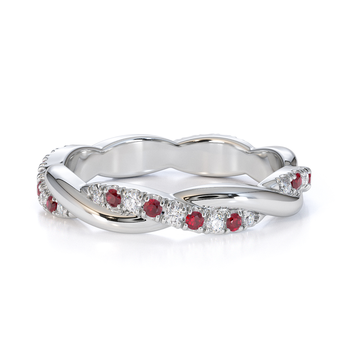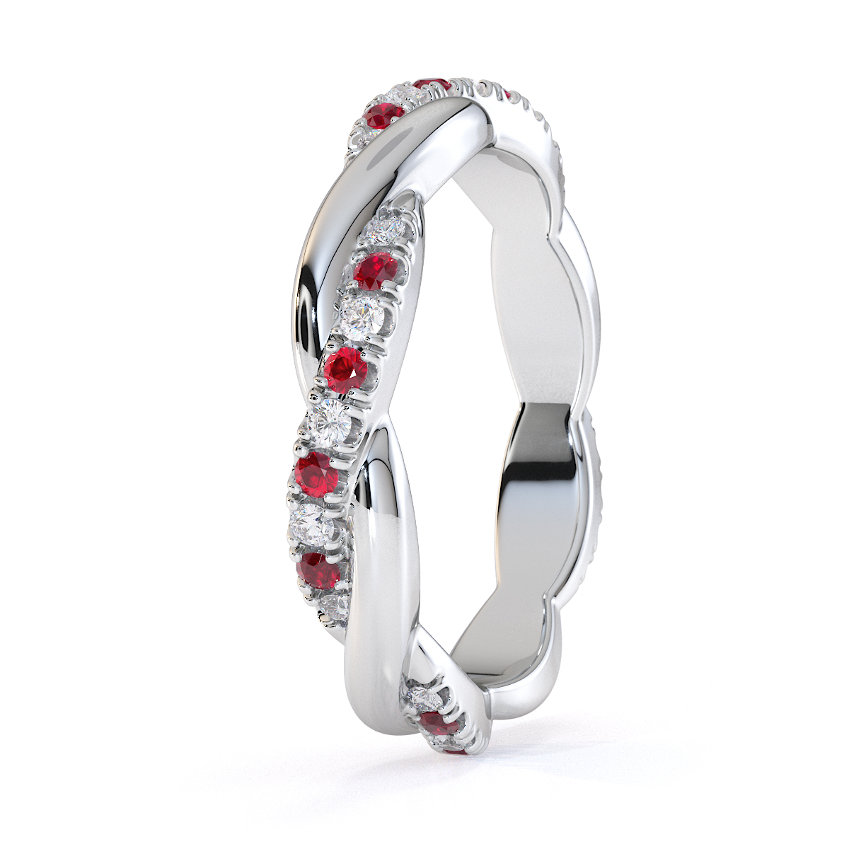Prong Set Diamond & Ruby Full Eternity Ring 0446