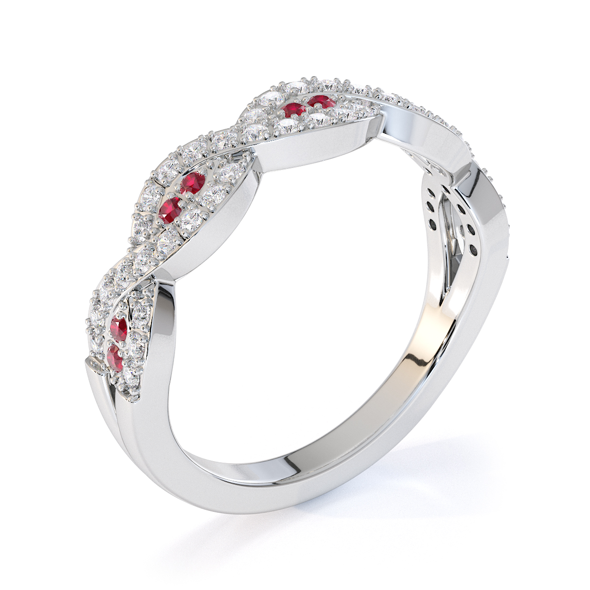 Prong Set Diamond & Ruby Half Eternity Ring 0423