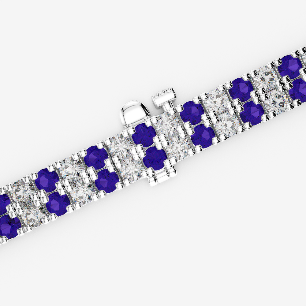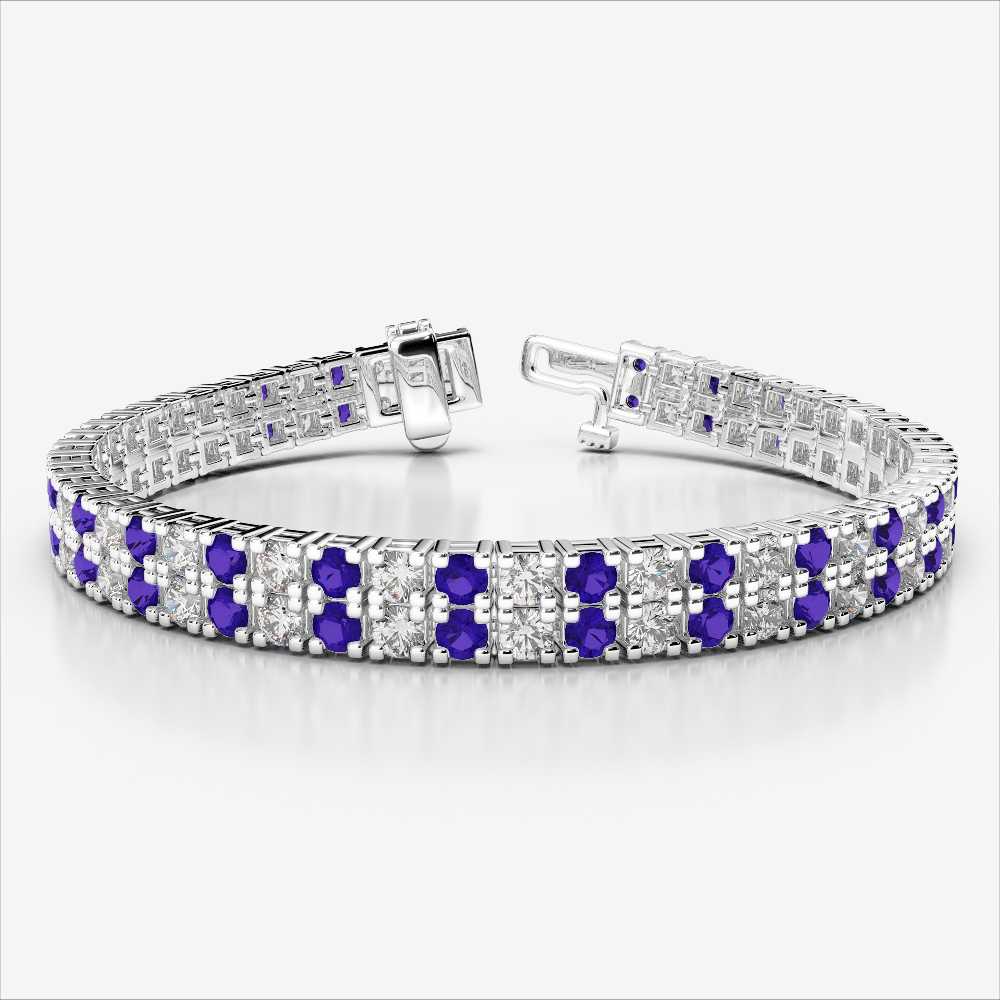 With its graceful composition, the Double Row Prong Set tanzanite and diamond bracelet exemplifies formal elegance. Prong-set round-cut stones shine with distinction, making it an impeccable accessory for black-tie events, weddings, or executive occasions. A true celebration of refined artistry.
