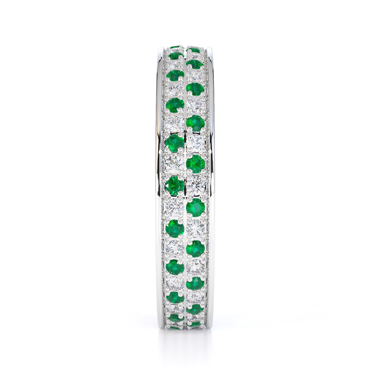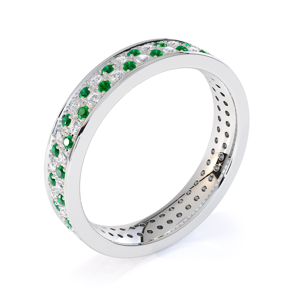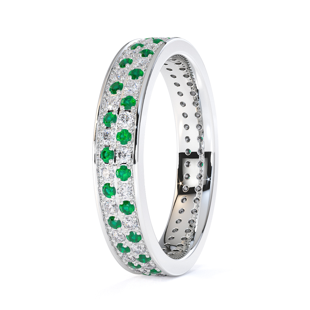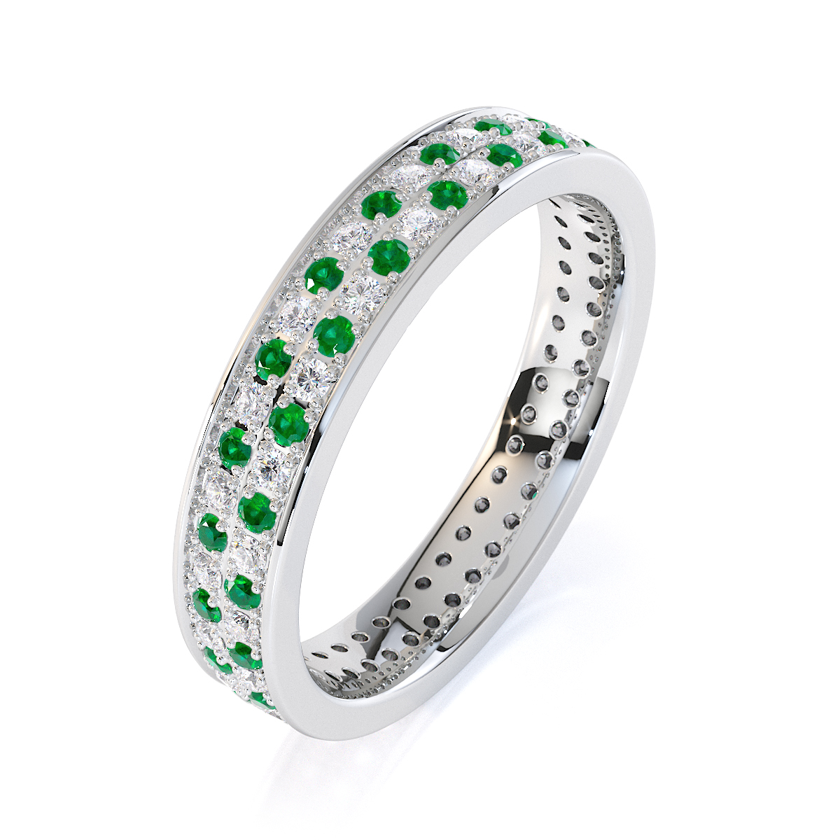 Prong Set Emerald and Diamond Full Eternity Ring 0430